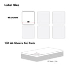 A4 Format Square Labels 50 x 50mm 15 Labels Per Sheet-100 Sheets