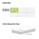 A4 Format Rectangle Light Green Labels 63.5x38.1mm 21 Labels Per Sheet--100 Sheets