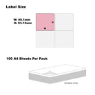 A4 Format Rectangle LIGHT PINK 99.1 x 93.1mm Label 6 Labels Per Sheet-100 Sheets