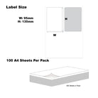 A4 Format Rectangle White 135x95mm 4 Labels Per Sheet-100 Sheets