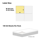 A4 Format Rectangle Yellow 99.1 x 93.1mm Label 6 Labels Per Sheet-100 Sheets