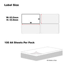 A4 Format Rectangle Labels 63.5 x 33.9mm 24 Labels Per Sheet-100 Sheets