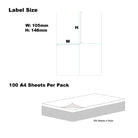 A4 Format Rectangle White 148x105mm (Borderless) 4 Labels Per Sheet-100 Sheets