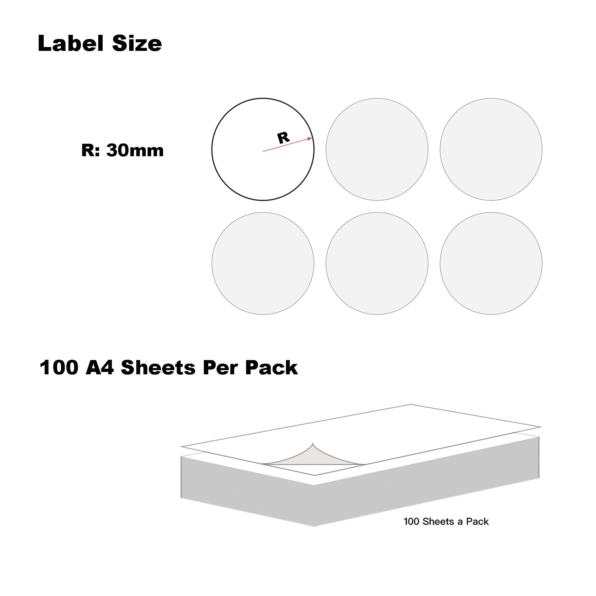 A4 Format Round Labels Diameter 60mm 12 Labels Per Sheet-1000 Sheets-Bulk Buy
