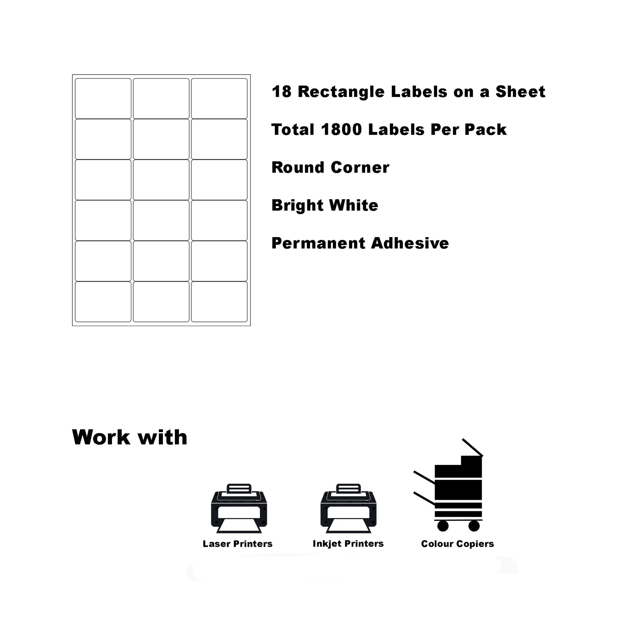 A4 Format Rectangle Labels 63.5 x 46mm 18 Labels Per Sheet-1000 Sheets-Bulk Buy