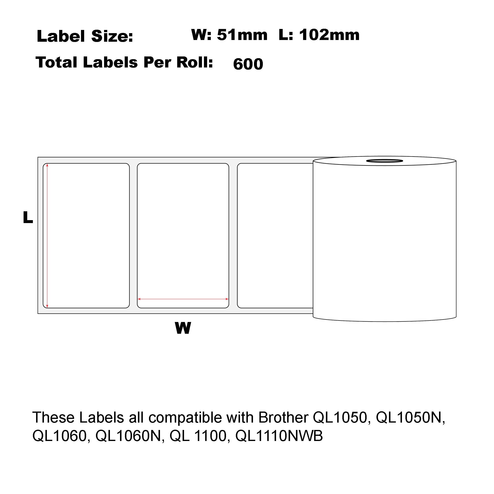 - Label Size: 102mm x 51mm Die-Cut 600 Labels Per Roll