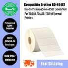 Compatible Brother RD-S04C1 Freezer & Fridges Food safe Removable Labels. Black Text on White Label Roll - Die-Cut 76mm x 25mm-1500 Labels per Roll for TD-4420DN & TD-4550DNWB Thermal Printers