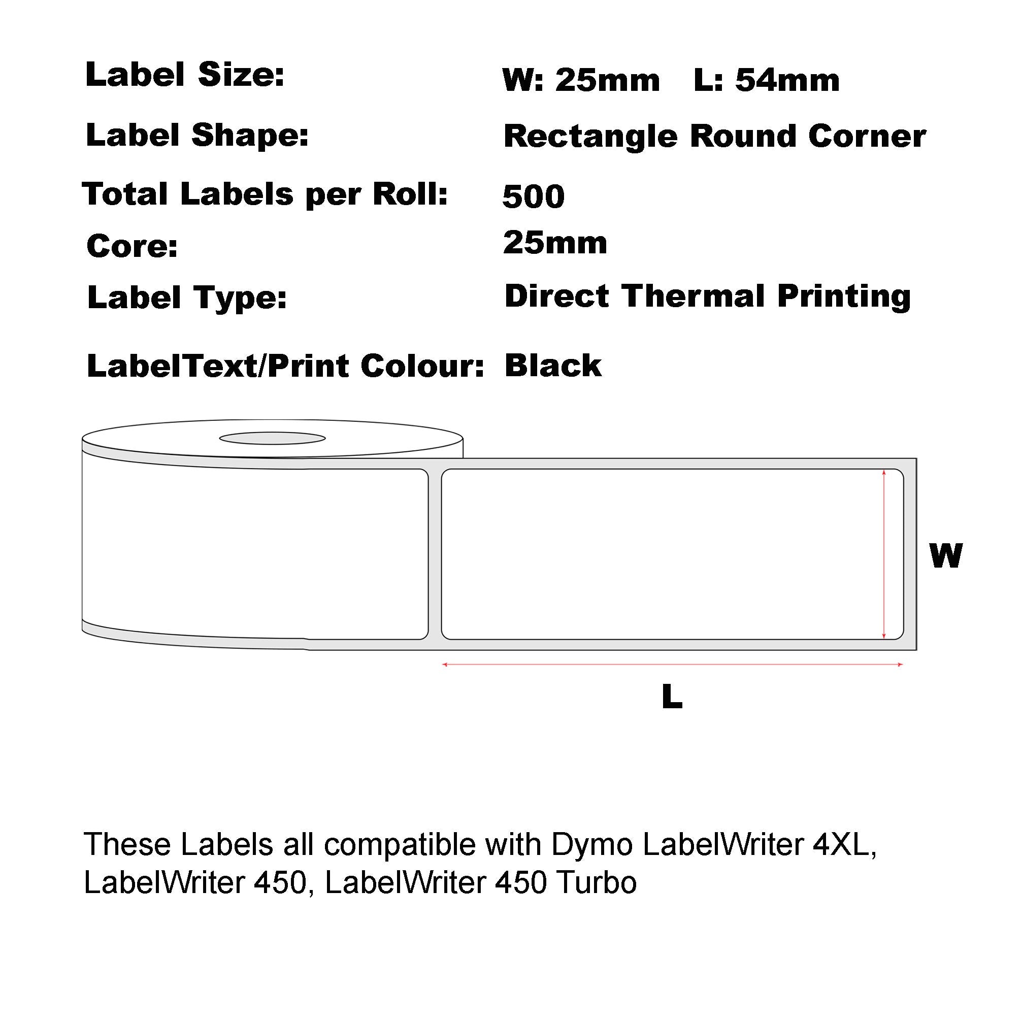 Label measures: 54mm x 25mm, 500 labels with each roll.