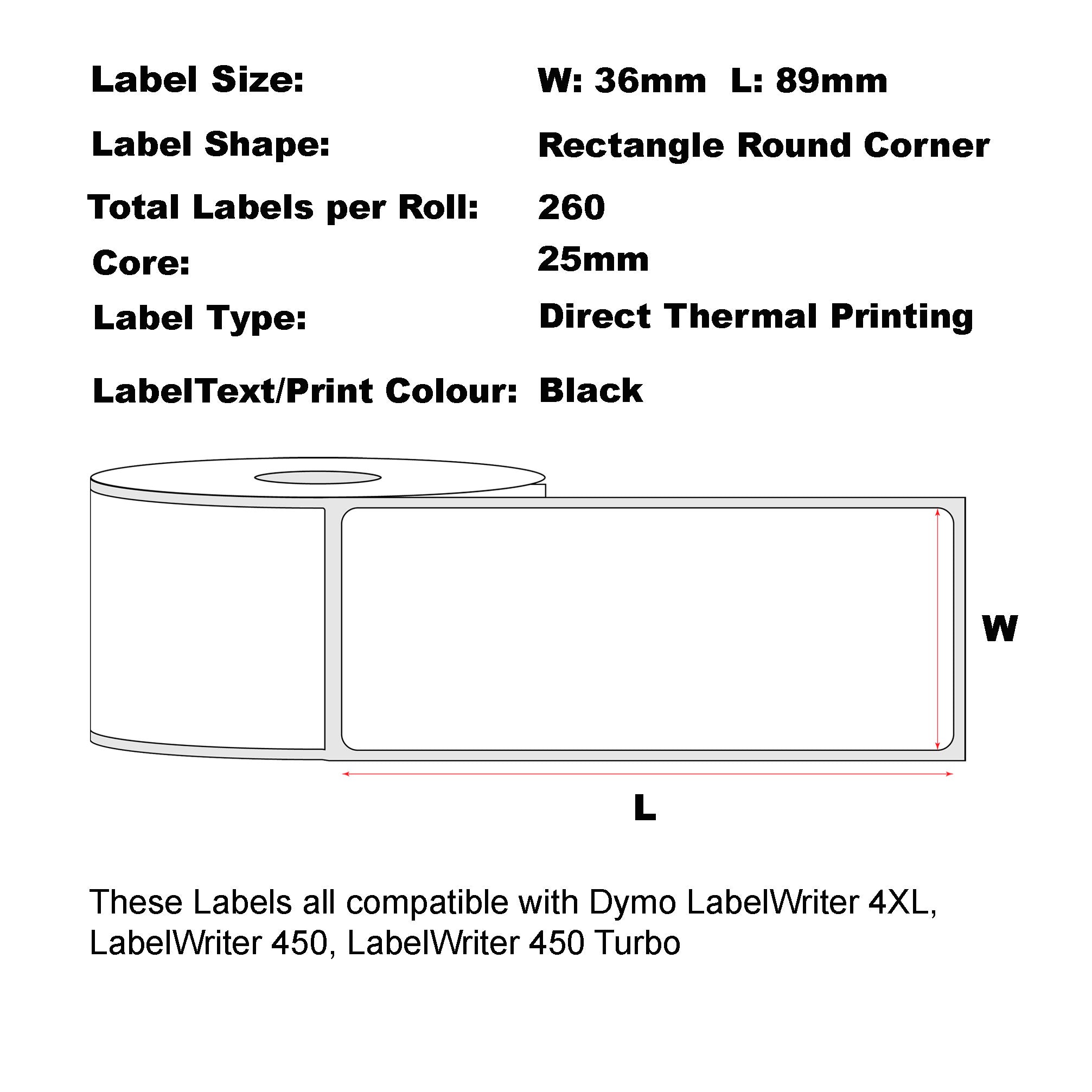 Label measures: 36mm x 89mm, 260 labels with each rolls.