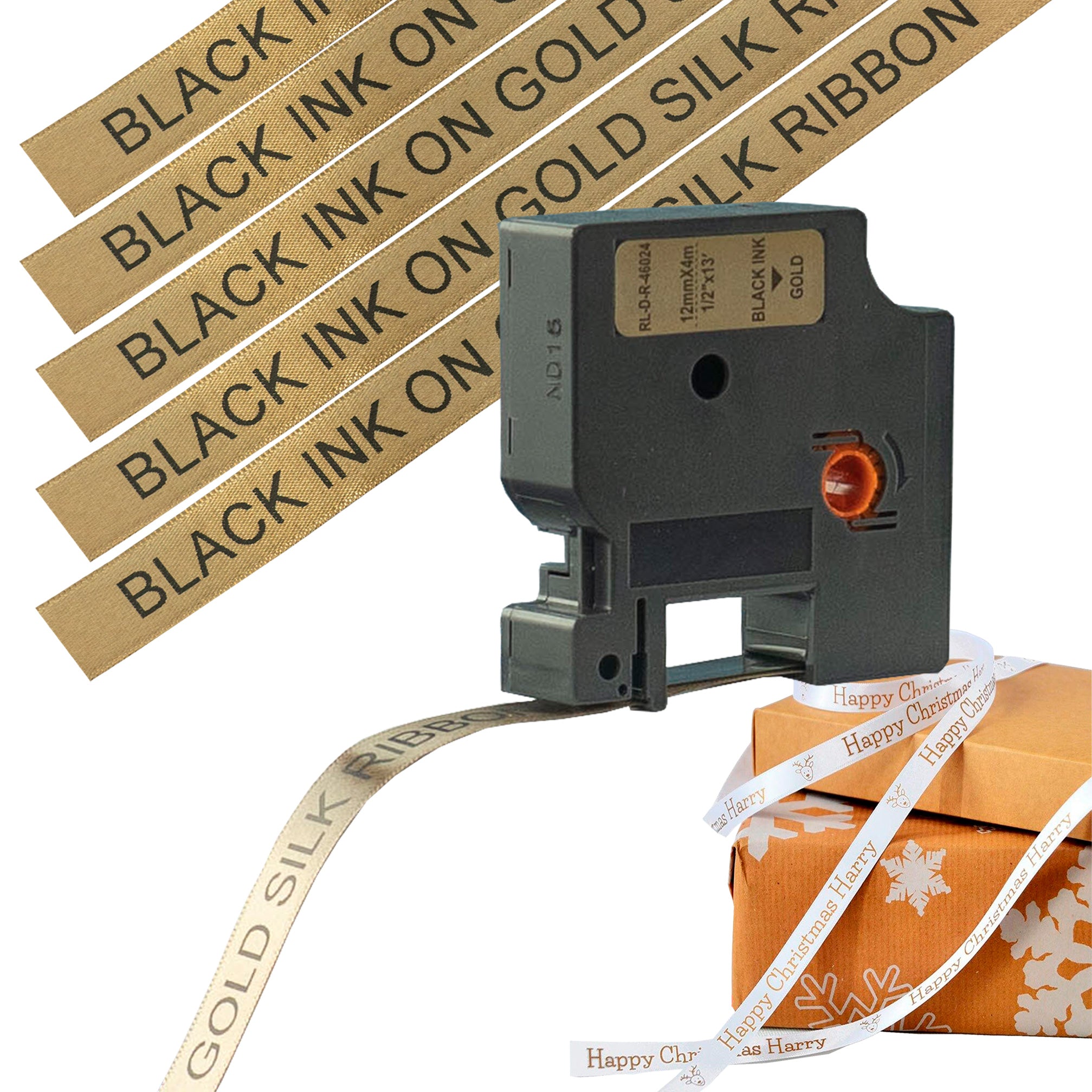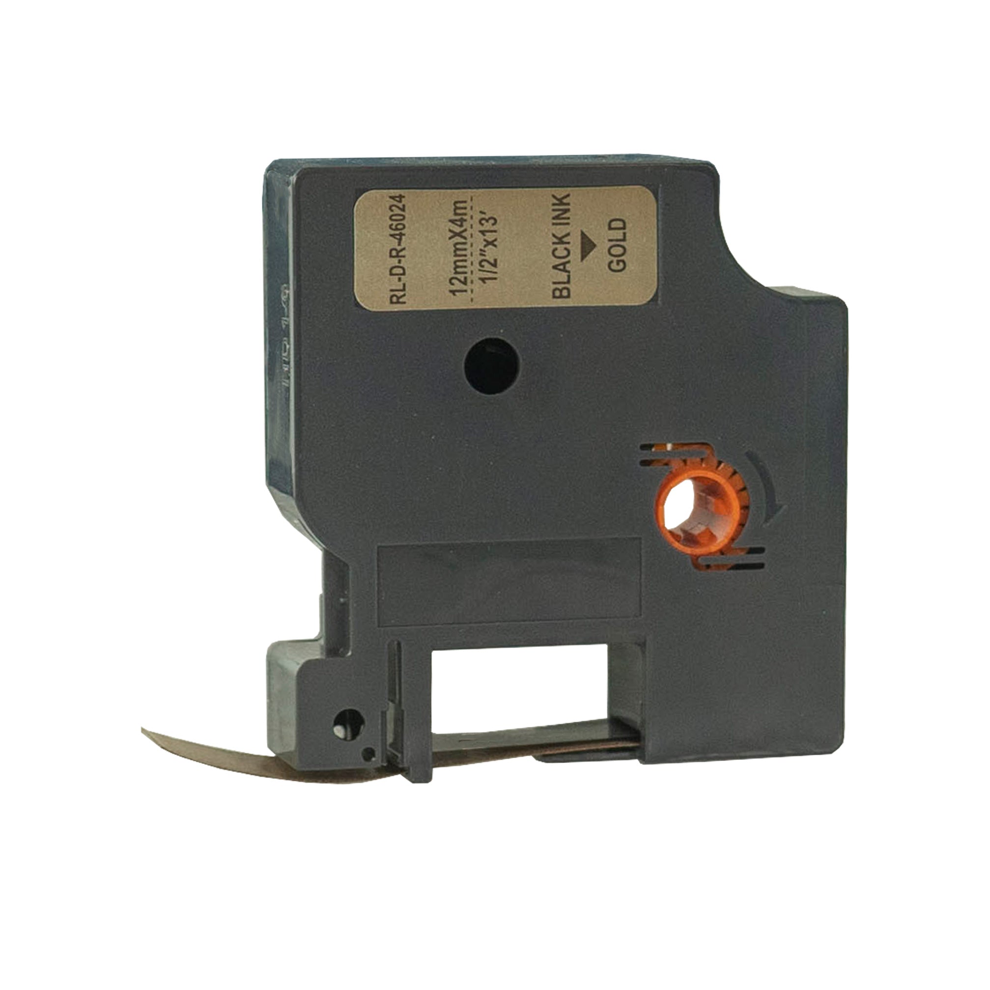 Compatible Dymo D1 46024 Silk Label Tapes Black on Gold 12mm x 4m