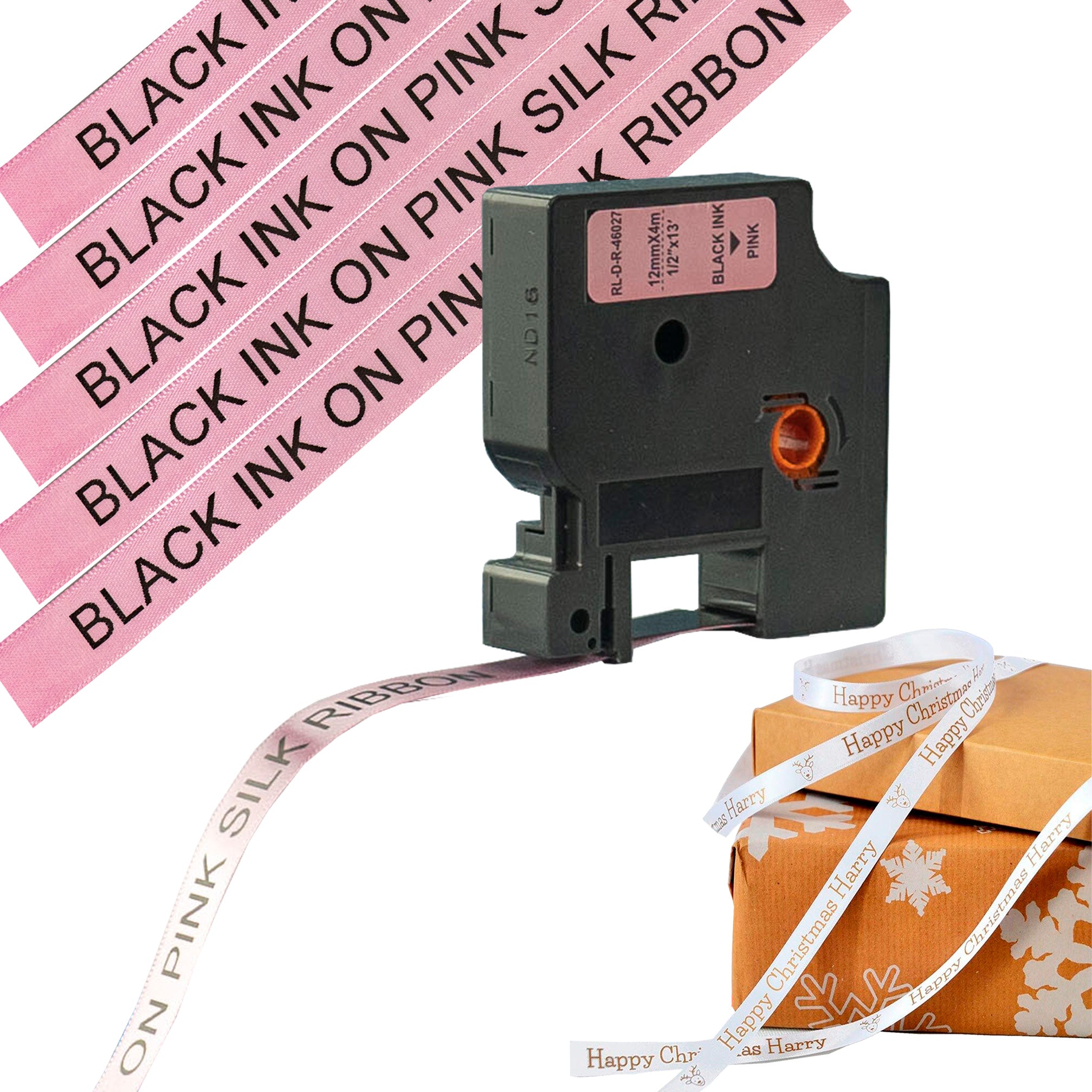 Compatible Dymo D1 46027 Silk Label Tapes Black on Pink 12mm x 4m