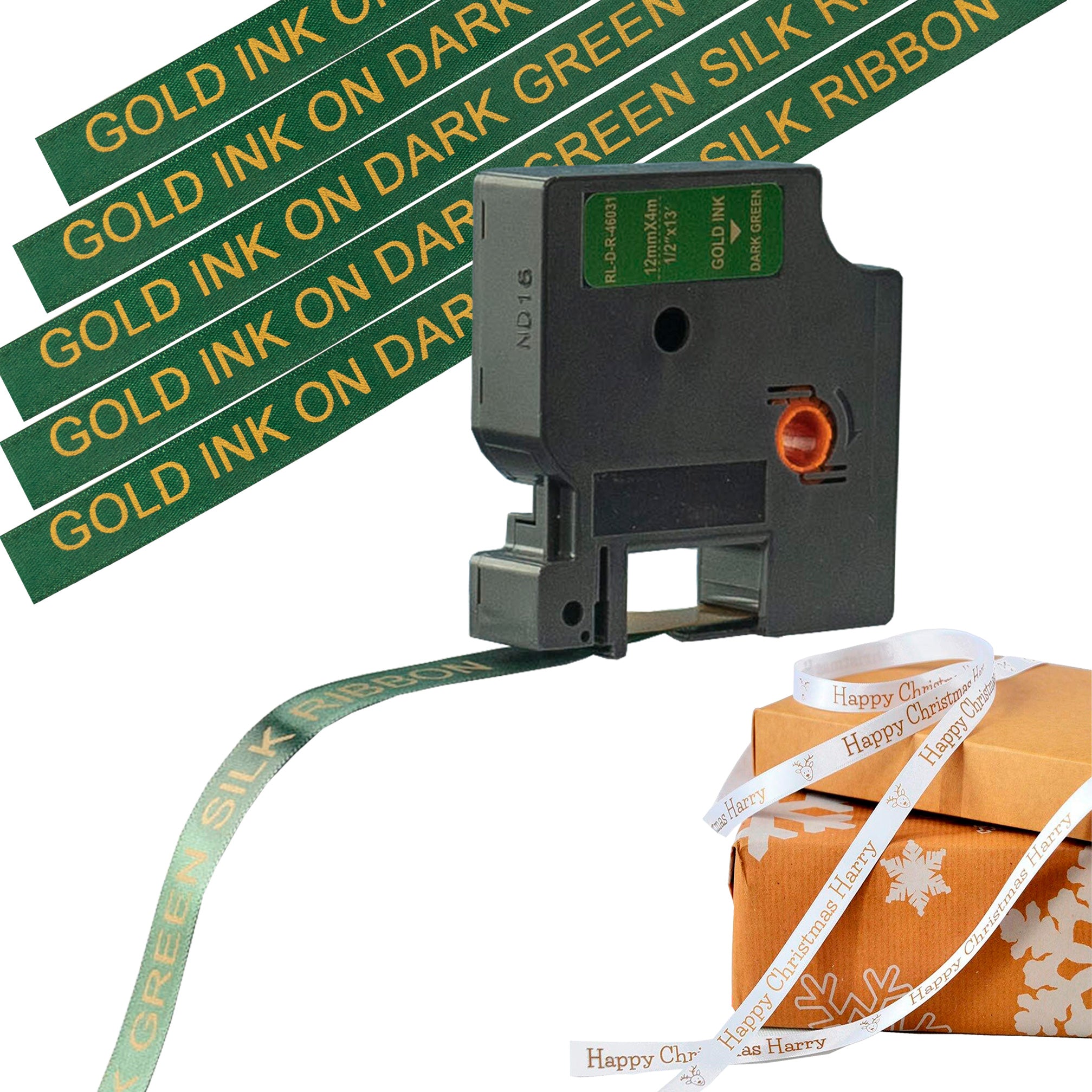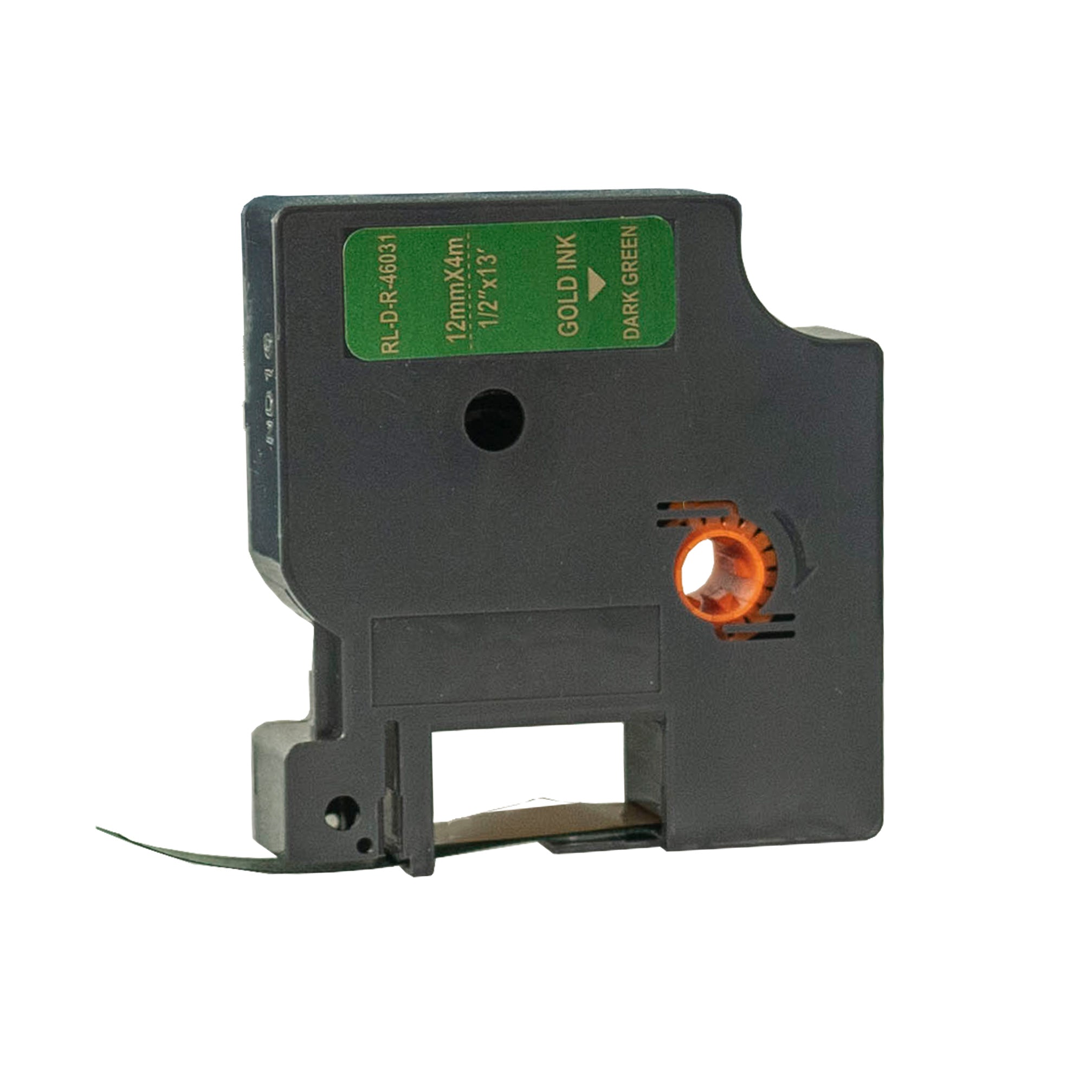 Compatible Dymo D1 46031 Silk Label Tapes Gold on Dark Green 12mm x 4m
