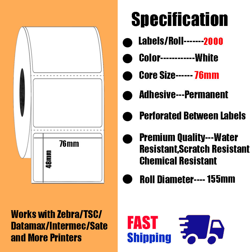 Direct thermal 100mm x 50mm (4"x2") 750 labels per roll white labels.