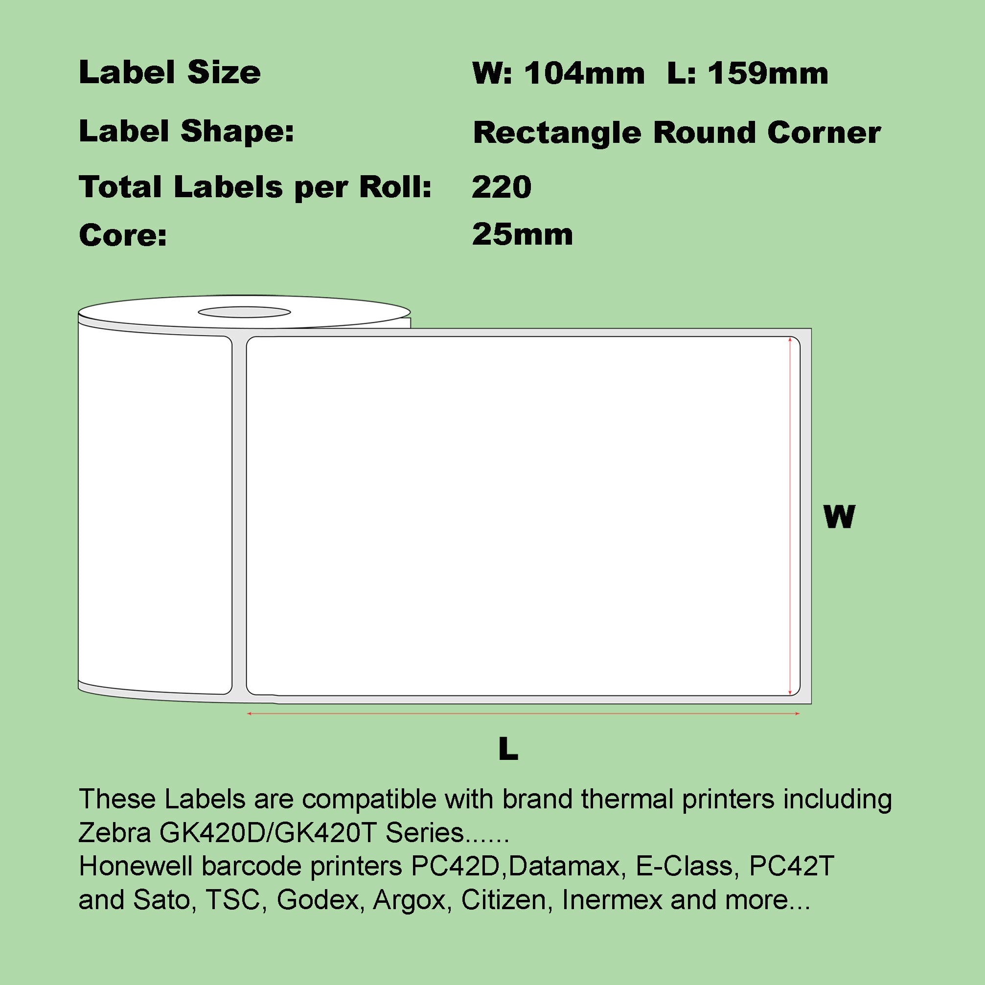 Direct Thermal 104mm x 159mm 220 Labels Per Roll 25mm Core