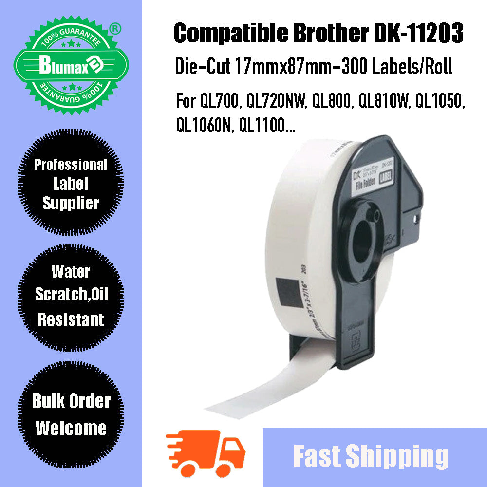 Compatible Brother DK-11203 File Folder White Paper Labels 17mm x 87mm 300 Labels Per Roll