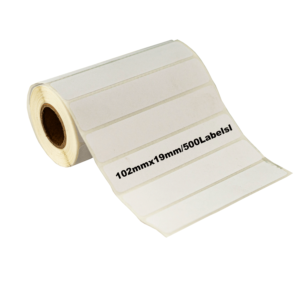 Available in a rectangle shape in the size of 102 x 19mm with 500 white labels on a roll. Permanent adhesive means they'll stick harder and longer.