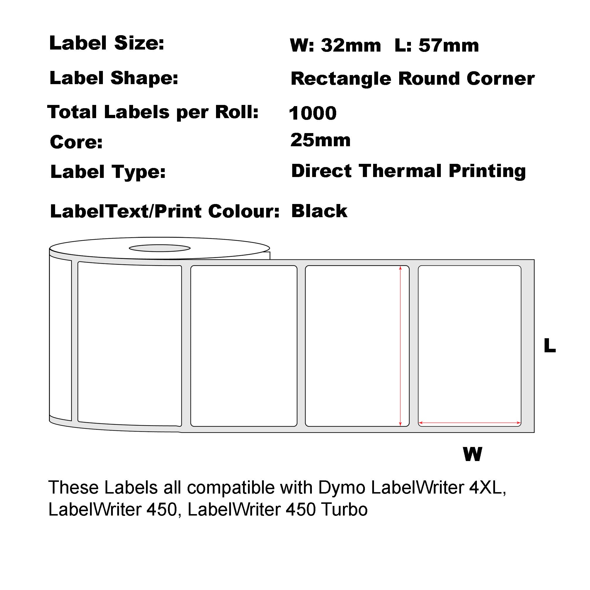 Label measures: 57 x 32mm, 1000 labels with each rolls.