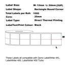 Label measures: 12mm x 24mm(2UP), 1000 labels with each rolls.