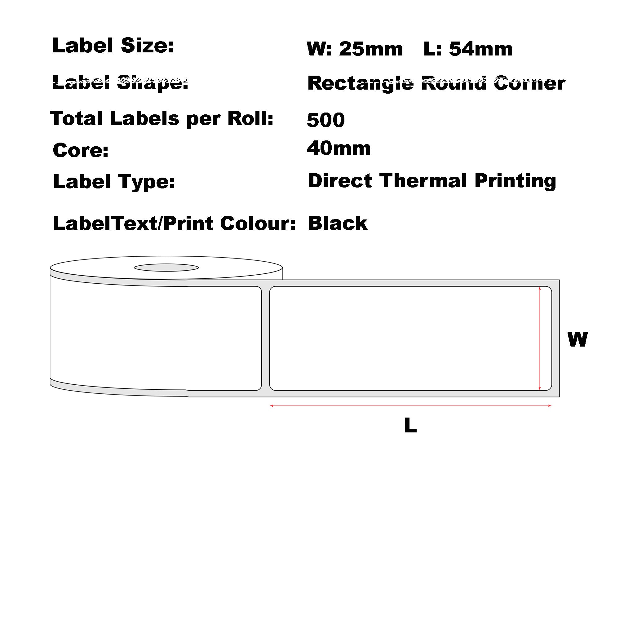 Label measures: 54mm x 25mm, 500 labels with each rolls.