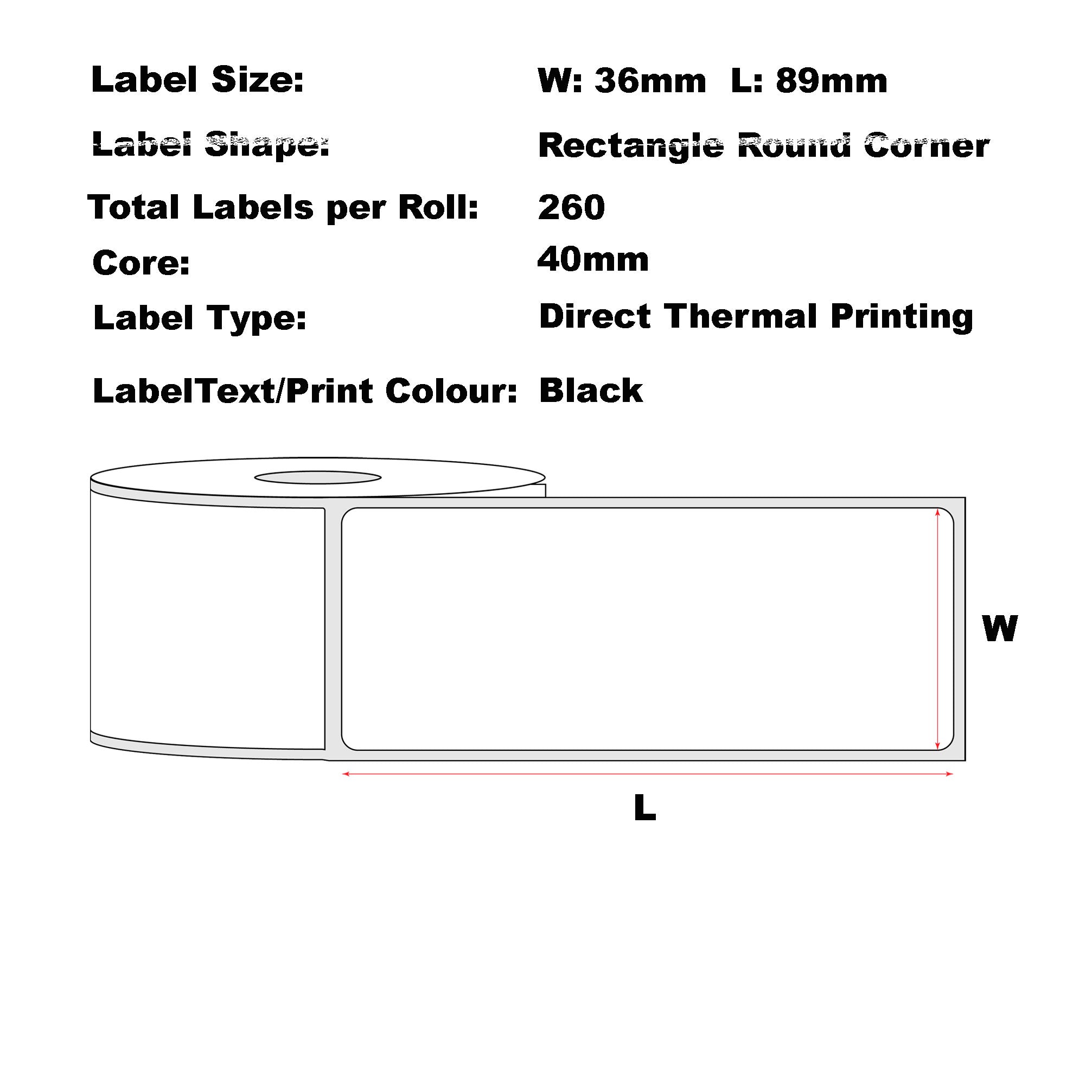 Label measures: 36mm x 89mm, 260 labels with each rolls.