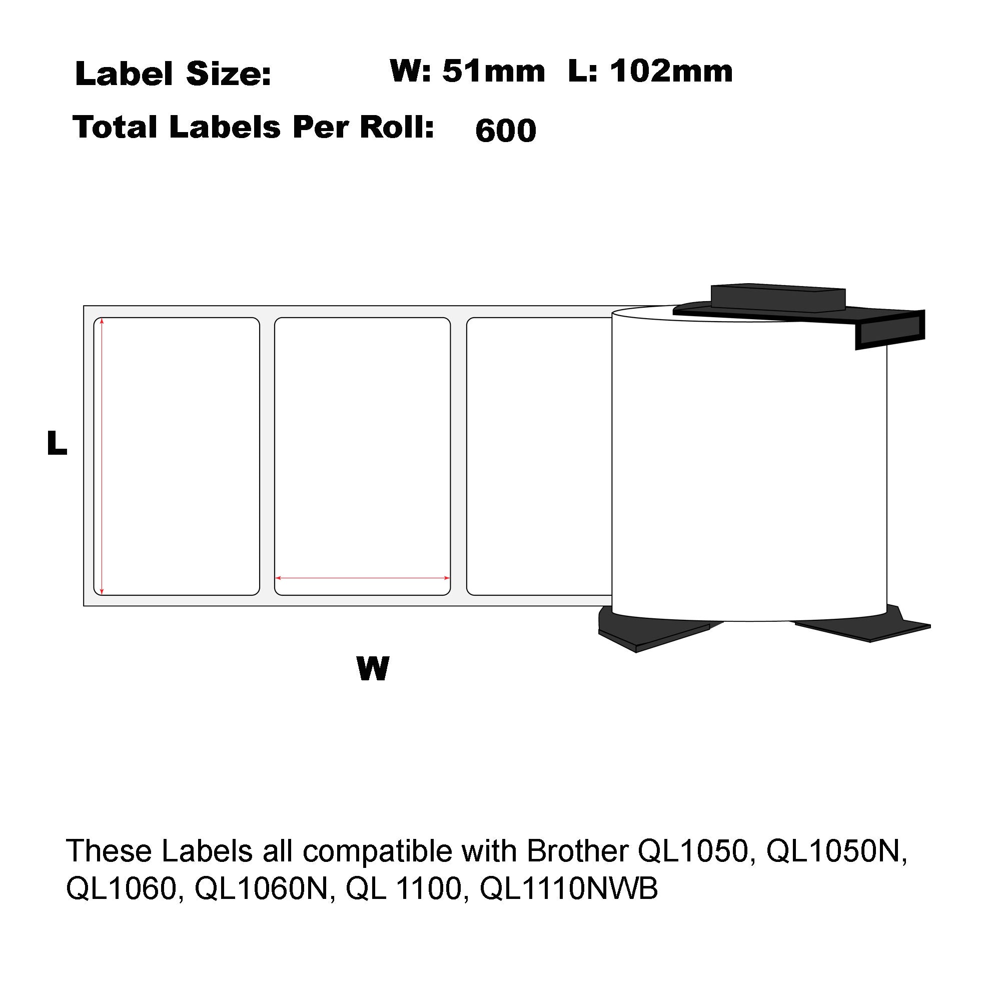 - Label Size: 102mm x 51mm Die-Cut 600 Labels Per Roll