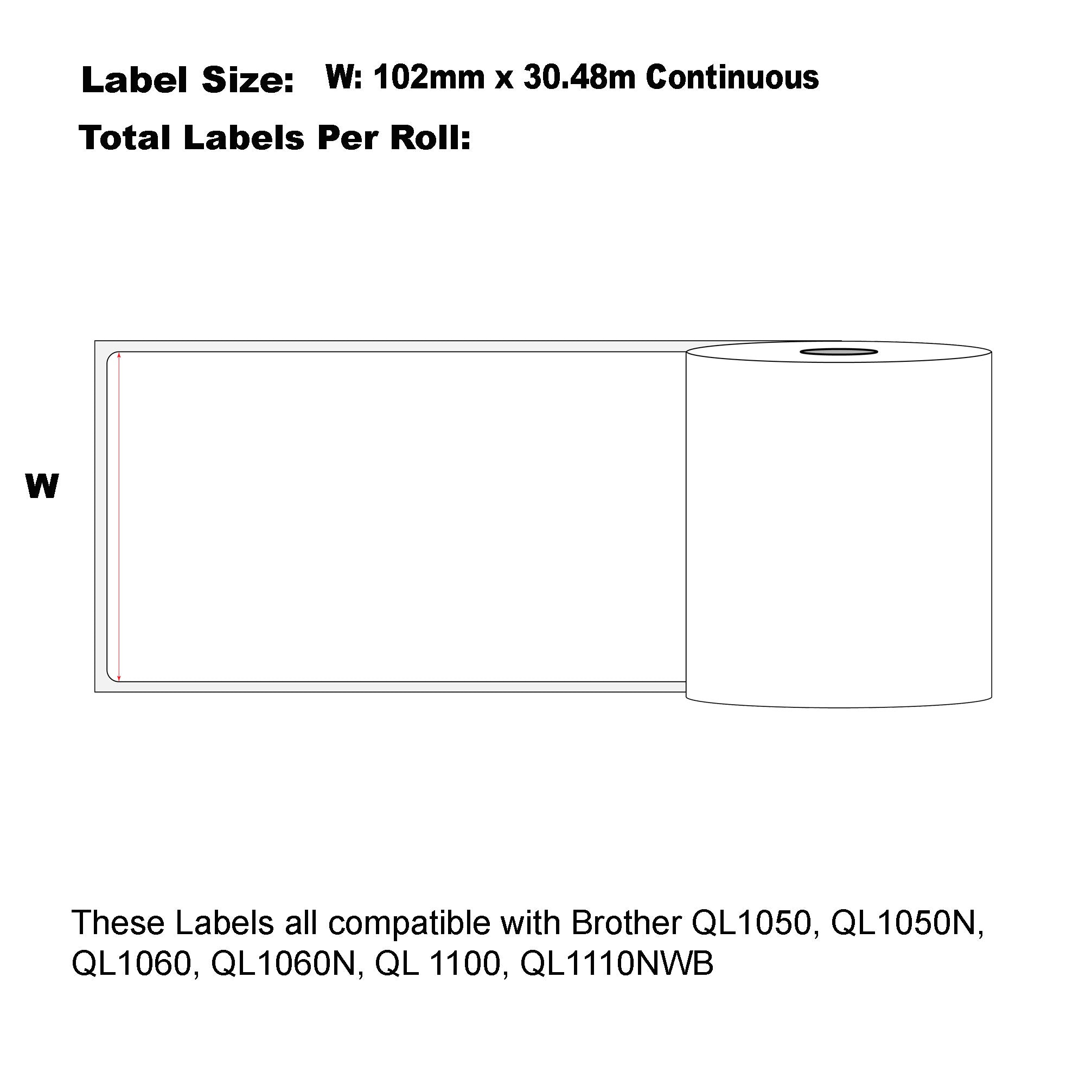 - Label wide: 102mm x 30.48m Continuous Length