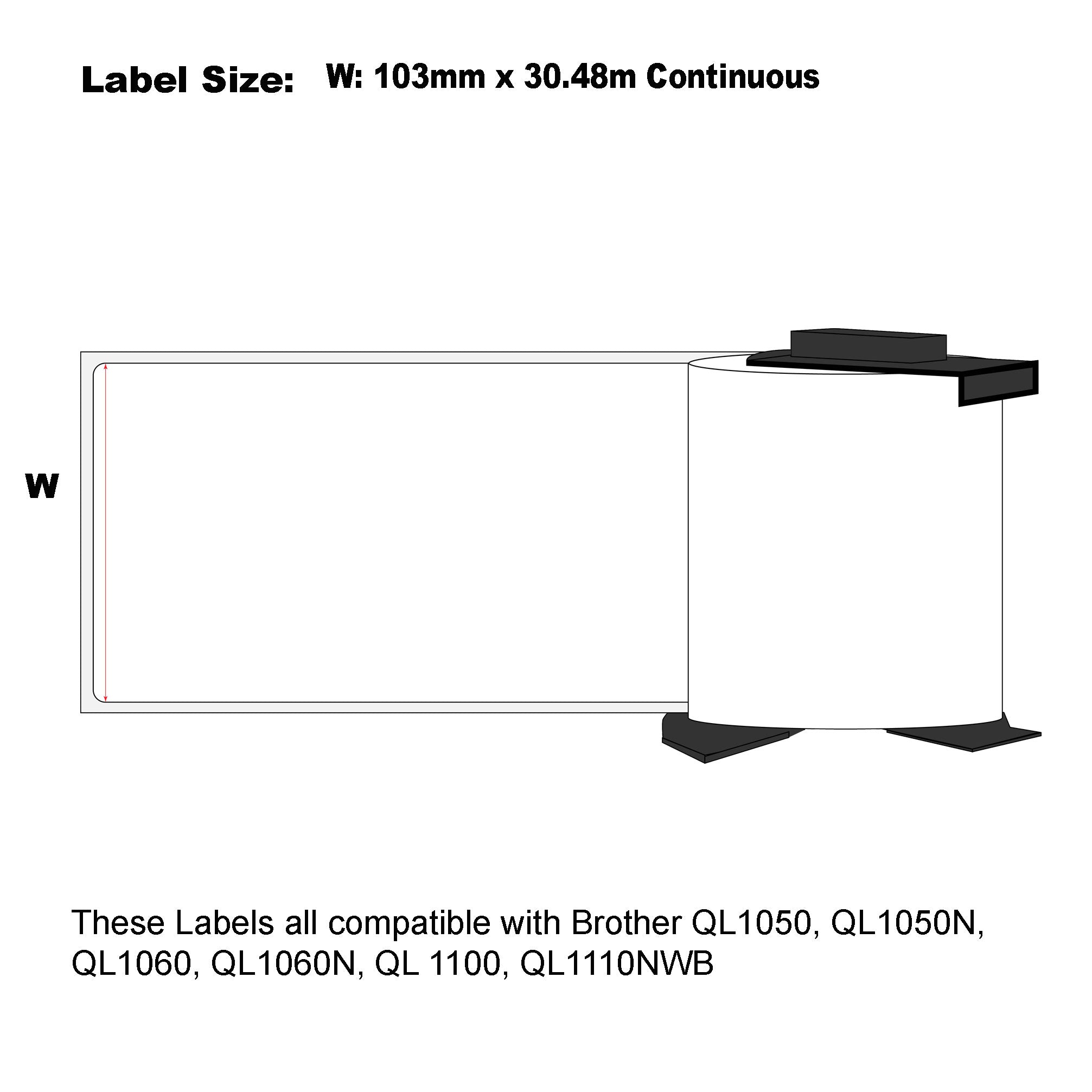 - Label wide: 103mm x 30.48m Continuous Length