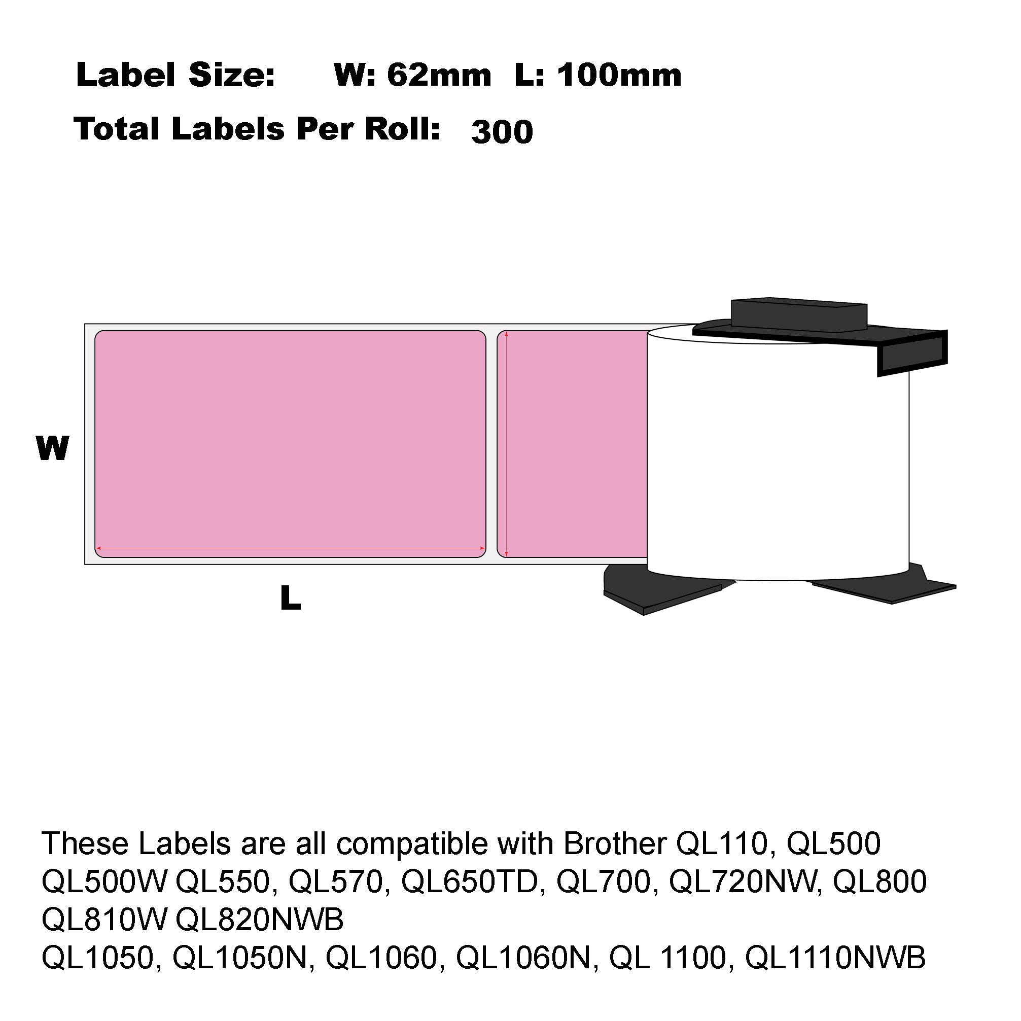Compatible Brother DK-11202 Pink Labels 62mm X 100mm 300 Labels Per Roll
