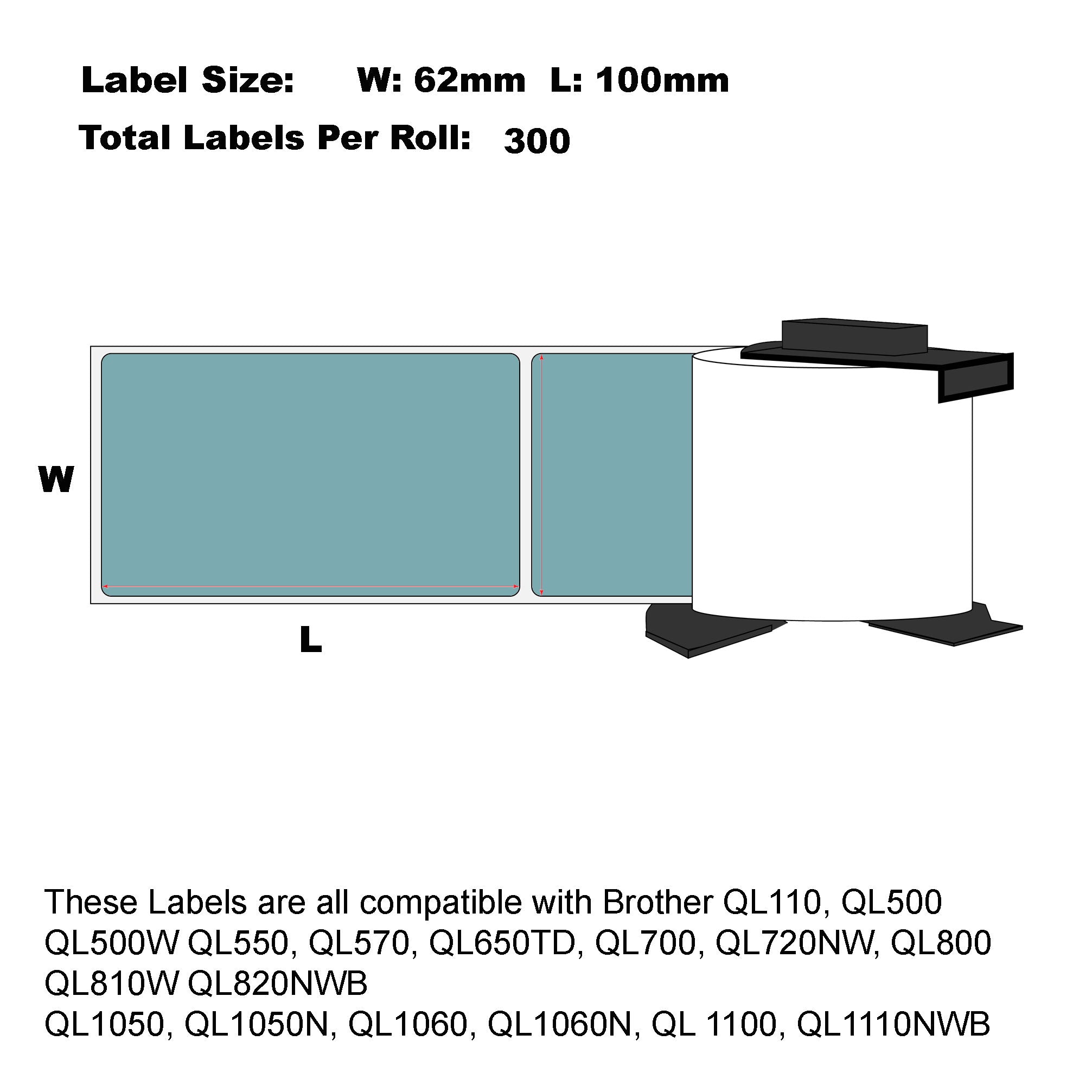 • Label Size: 62mm x 100mm Die-Cut 300 Labels Per Roll