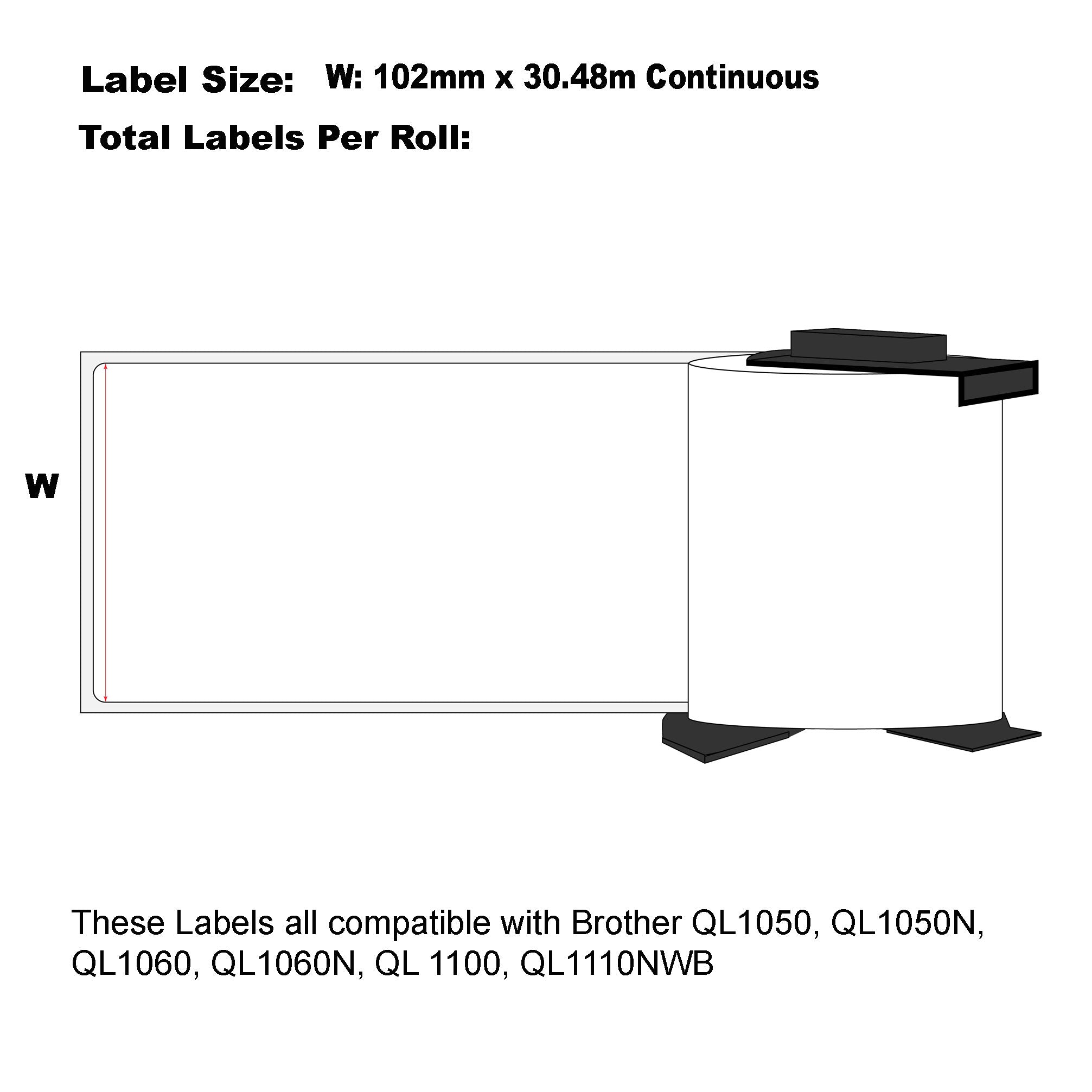 - Label wide: 102mm x 30.48m Continuous Length