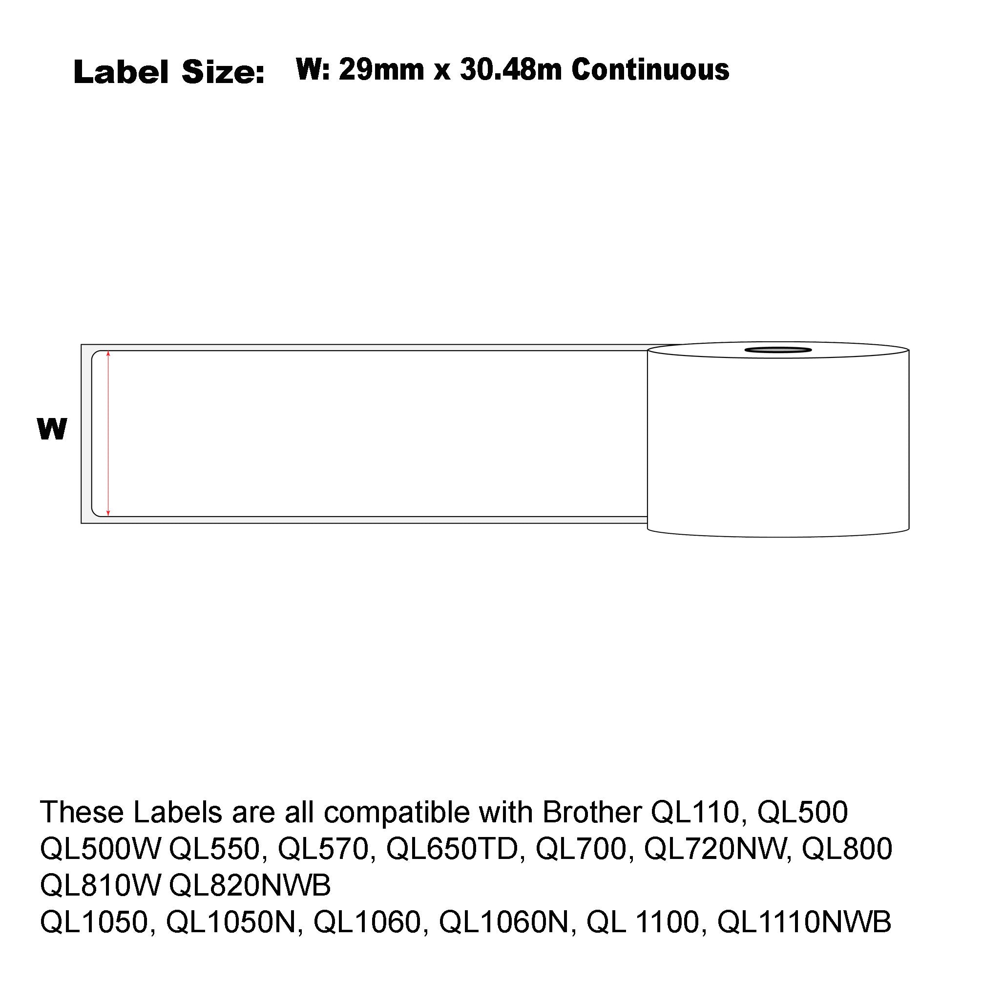 Compatible Brother DK-22210 White Label Tapes 29mm x 30.48m Continuous Length 42+2