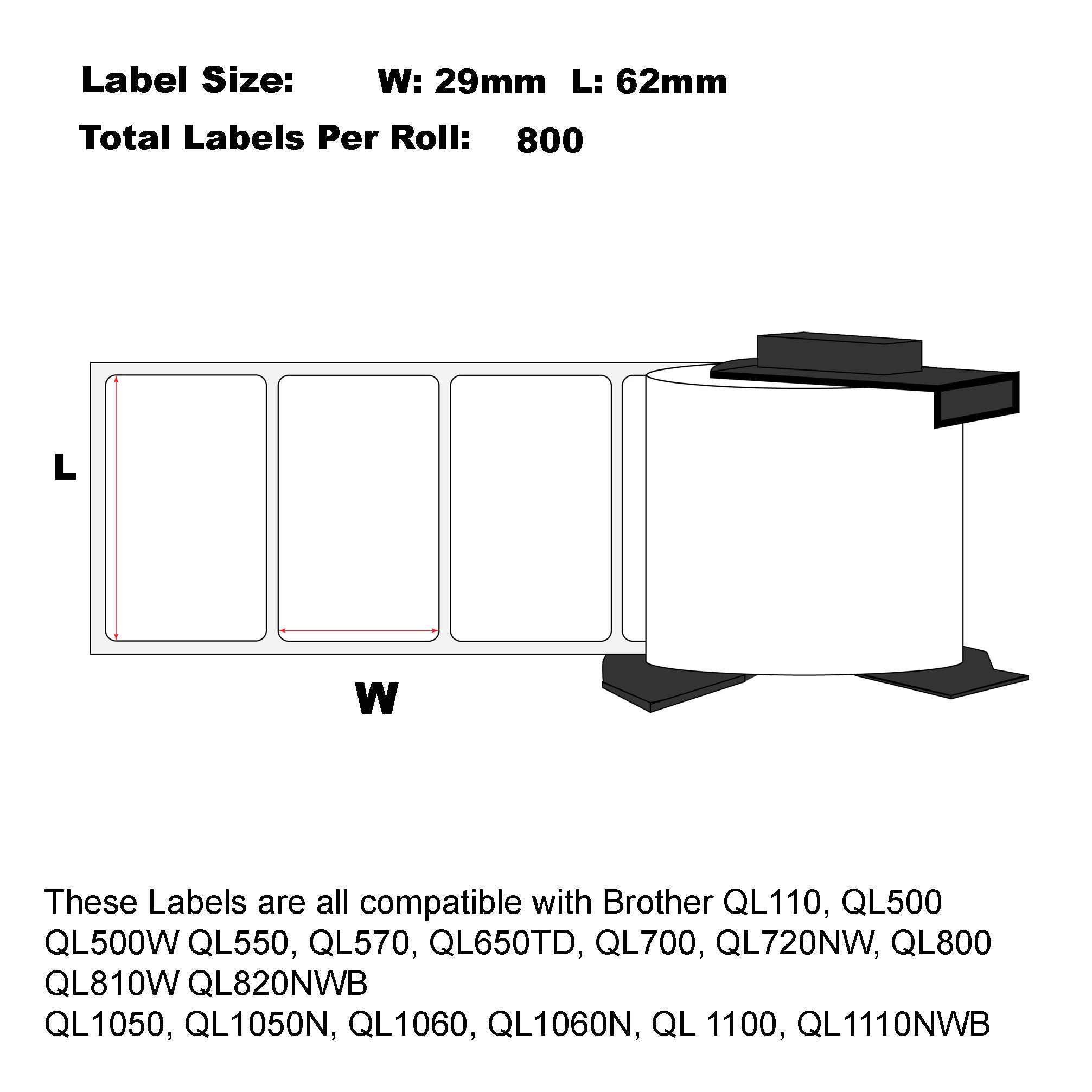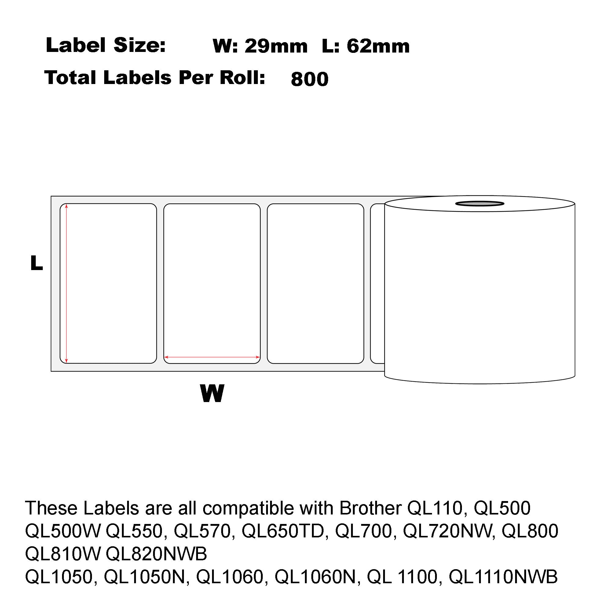 - Label Size: 62mm x 29mm Die-Cut 800 Labels Per Roll