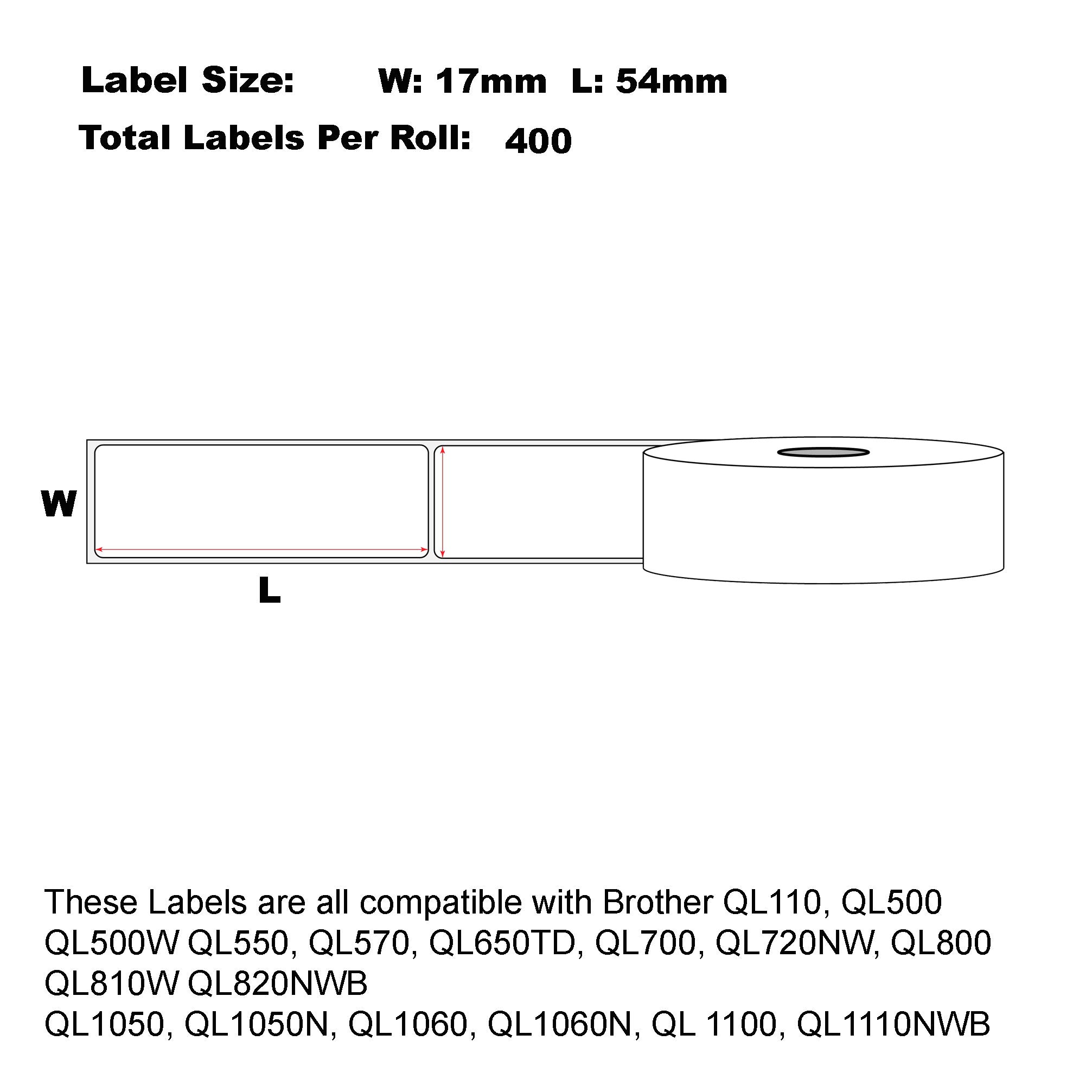 - Label Size: 17mm x 54mm Die-Cut 400 Labels Per Roll
