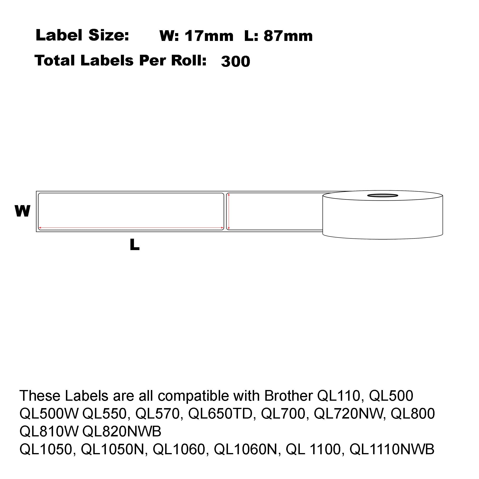 - Label Size: 17mm x 87mm Die-Cut 300 Labels Per Roll