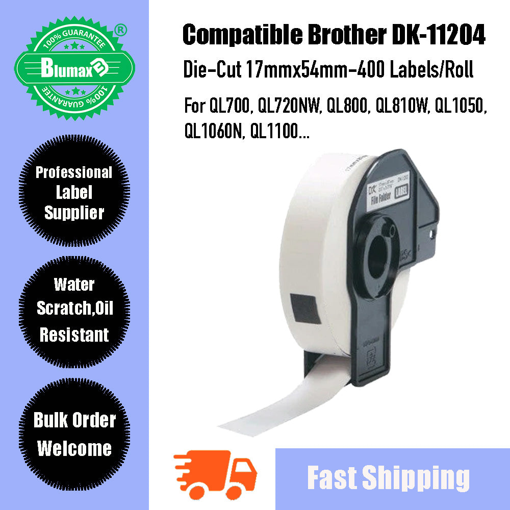 Compatible Brother DK-11204 White Paper Labels 17mm x 54mm 400 Labels Per Roll