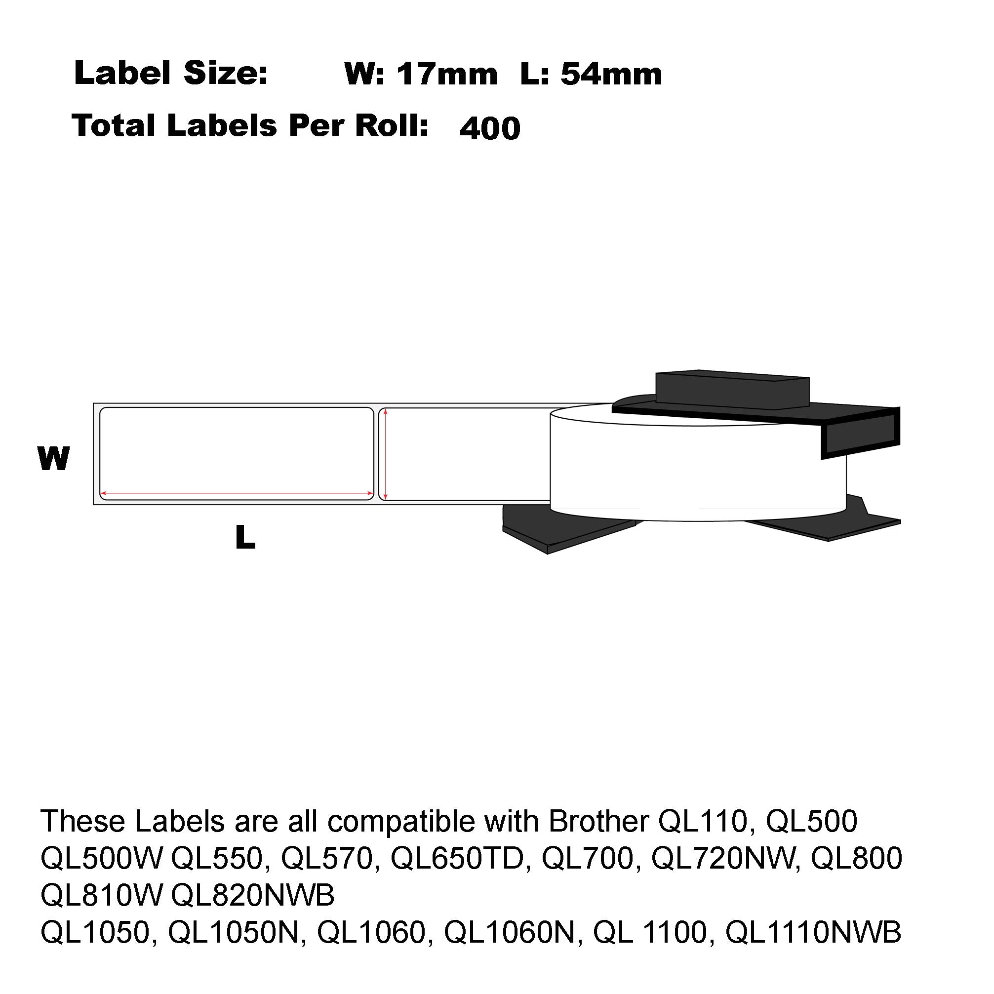 - Label Size: 17mm x 54mm Die-Cut 400 Labels Per Roll