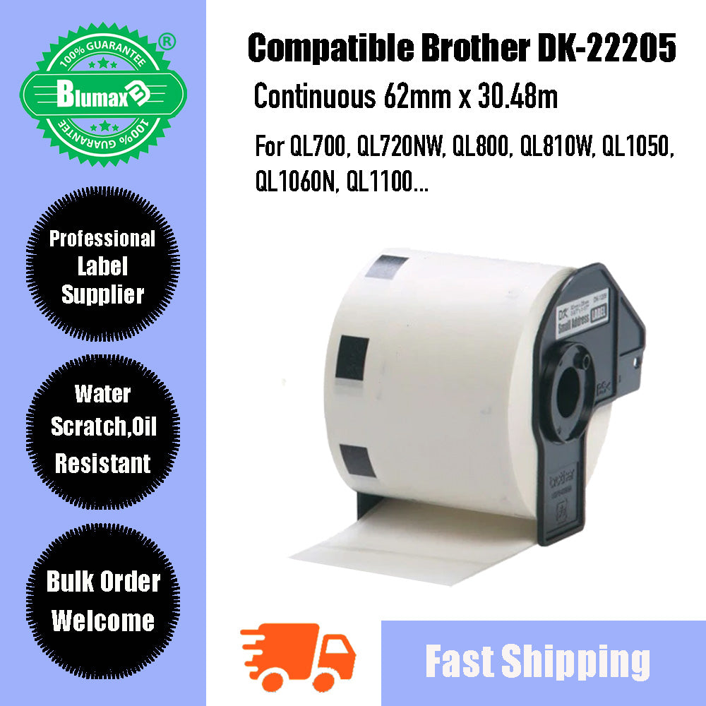 Blumax Brother DK-22205 Direct Thermal printing labels are fully compatible with Brother DK Label Tapes.