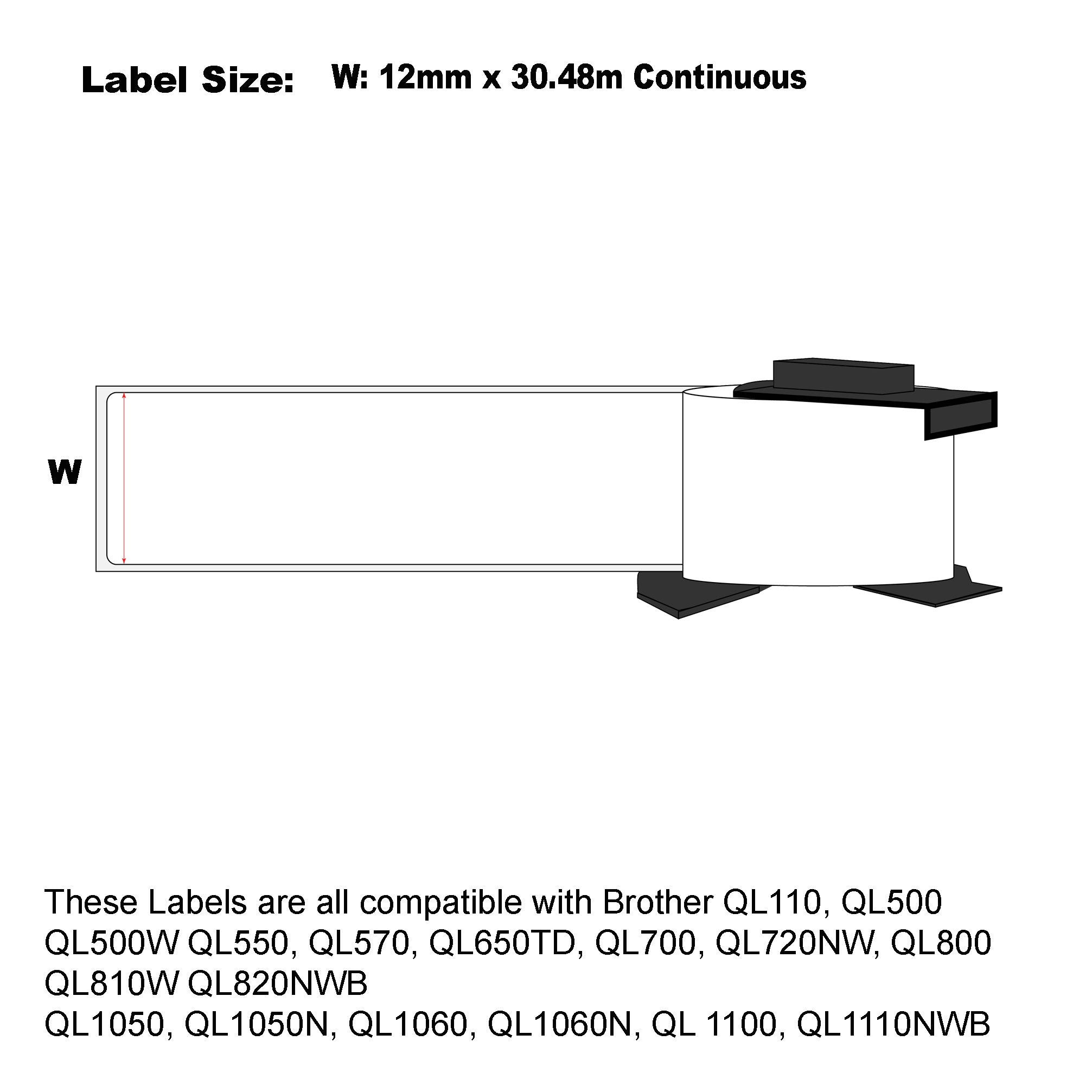 Compatible Labels for Brother DK-22214 Continuous Length White Paper Labels 12mm x 30.4m