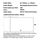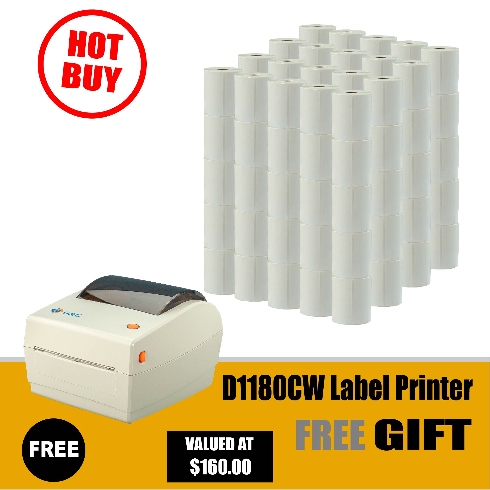 100 Rolls 100 x 150mm (4"x6") Direct Thermal Permanent Label, 300 Labels Per Roll + Free Gift D1180CW Label Printers