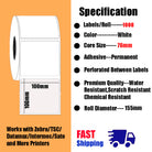 100x100mm (4"x4") Direct Thermal Label, 1000 Per Roll, 76mm Core, Permanent Sticky.