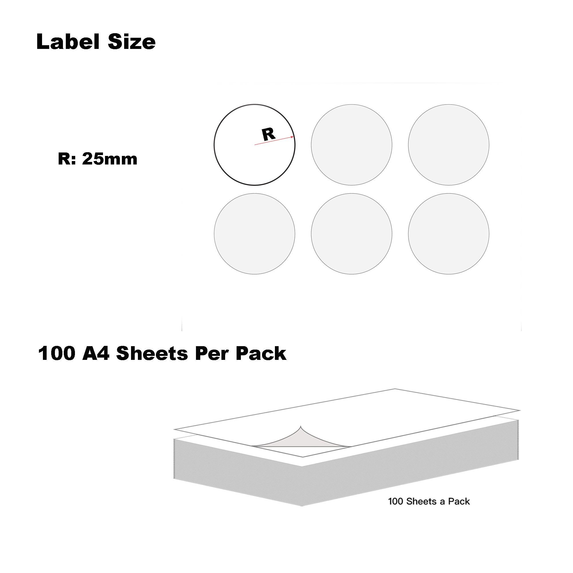 A4 Format Round Labels Diameter 50mm 15 Labels Per Sheet-1000 Sheets-Bulk Buy