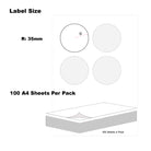 A4 Format Round Labels Ø 70mm 6 Labels Per Sheet