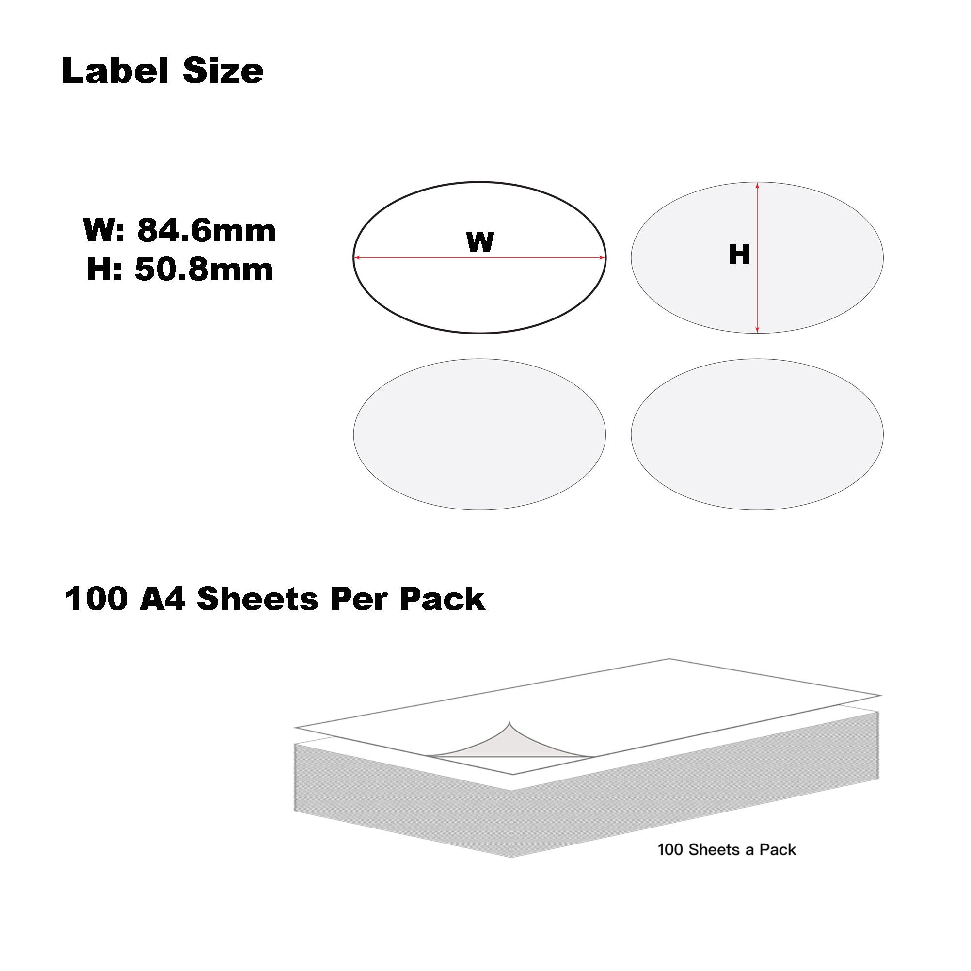 A4 Format Oval Labels 84.7 x 50.8mm 8 Labels Per Sheet