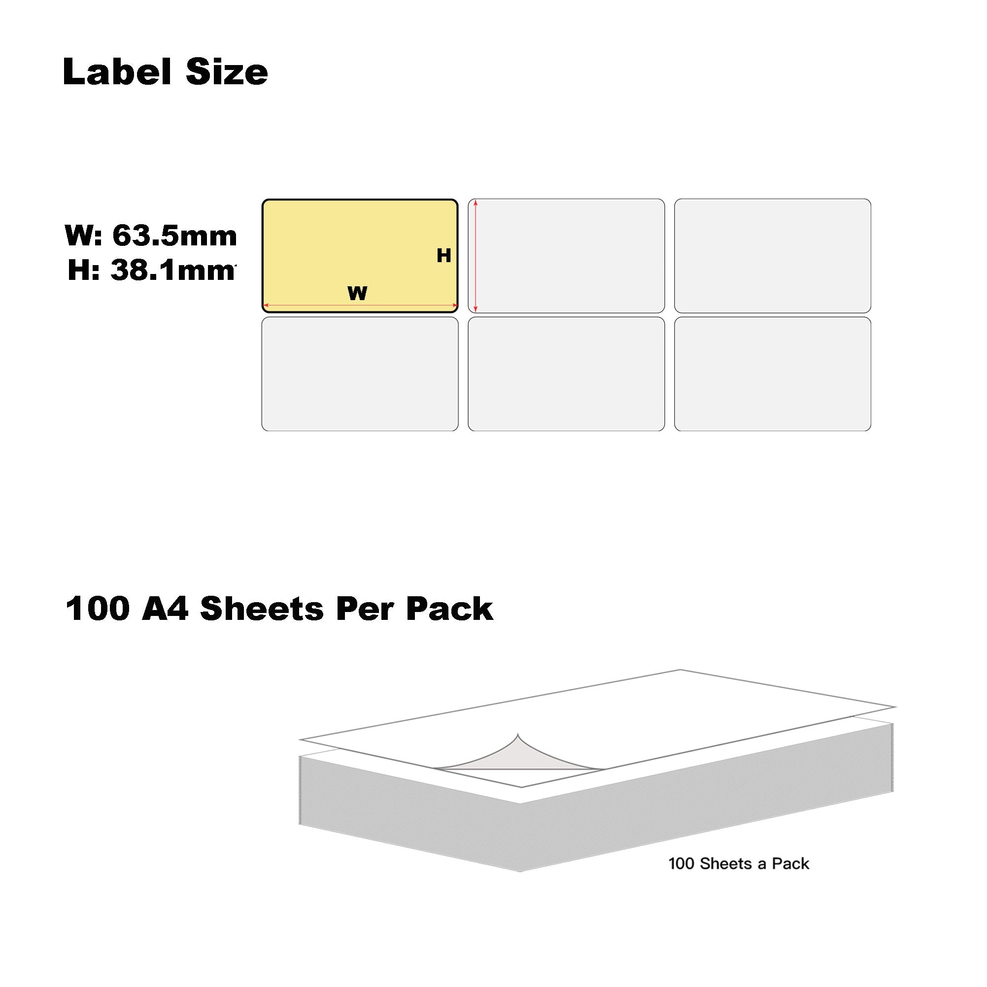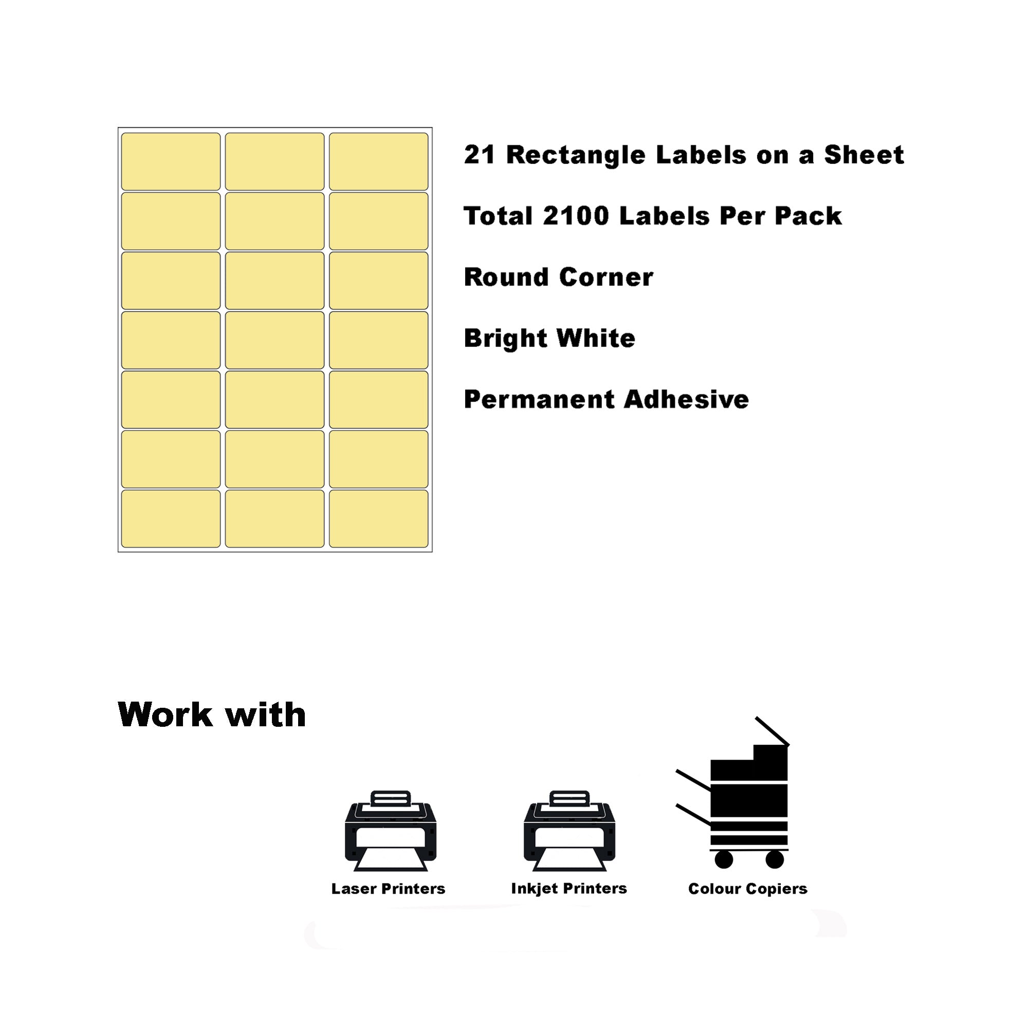 A4 Format Rectangle Yellow Labels 63.5x38.1mm 21 Labels Per sheet--100 Sheets