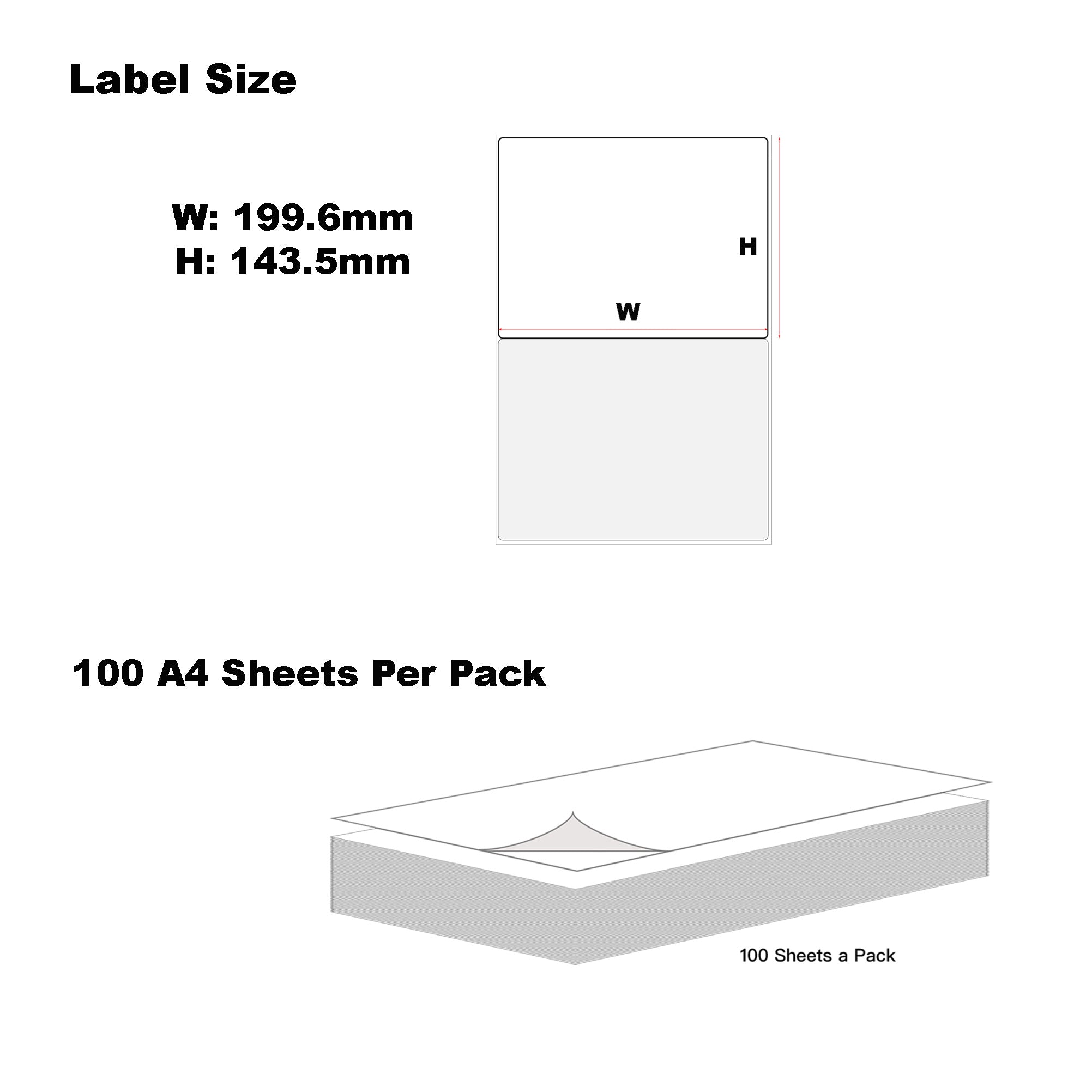 A4 Format Rectangle Labels 199.6 x 143.5mm 2 Labels Per Sheet-100 Sheets