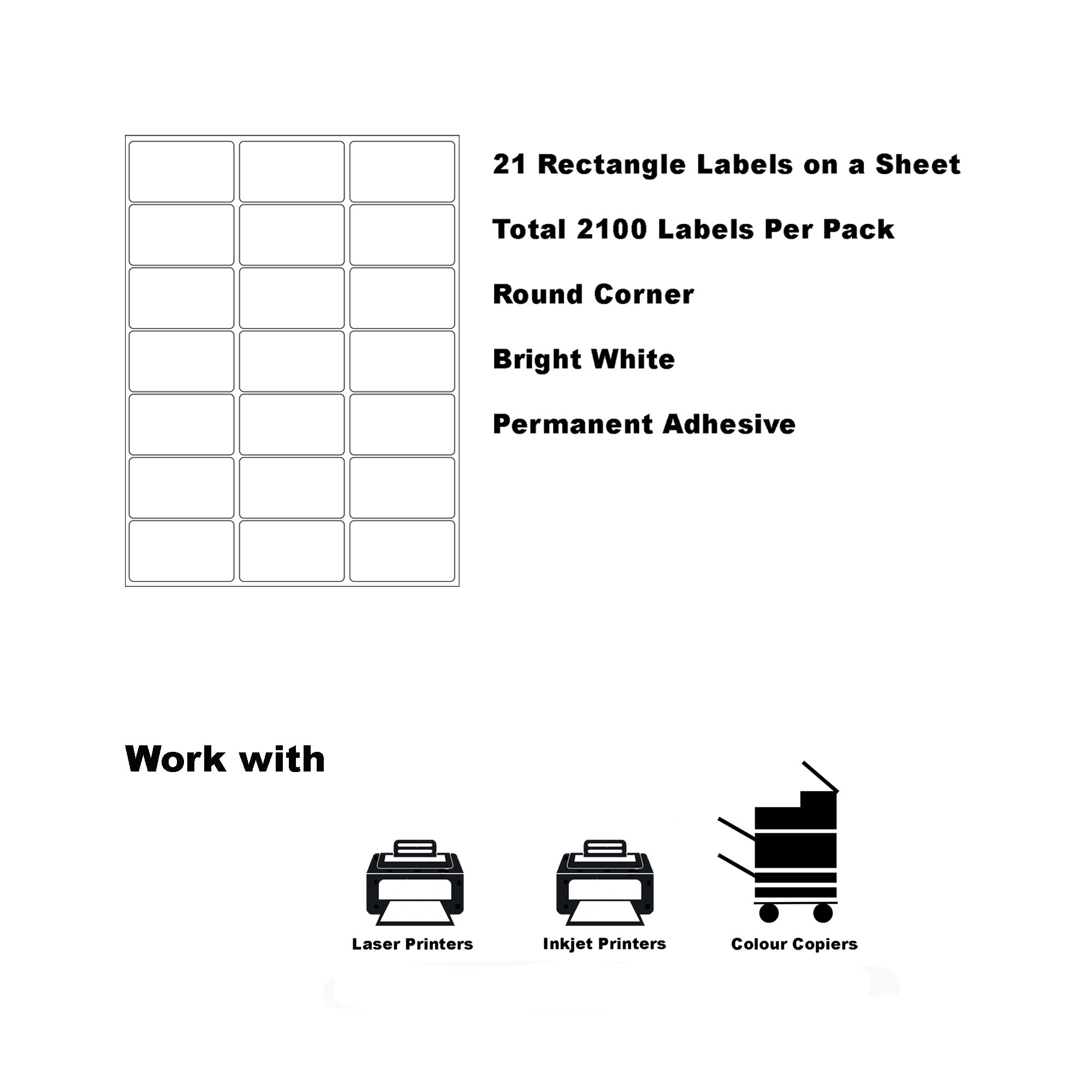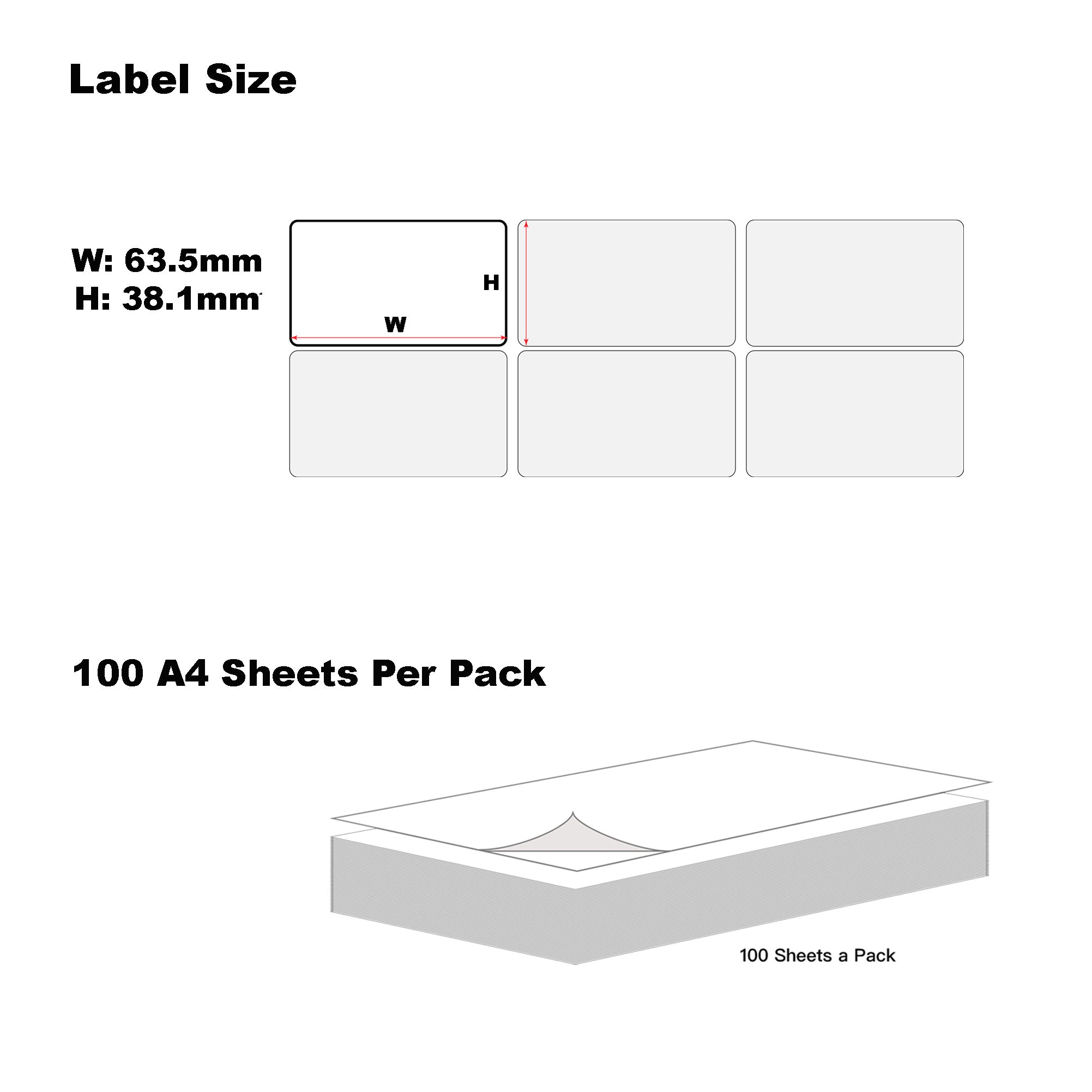 A4 Format Rectangle White Labels 63.5 x 38.1mm 21 Labels Per Sheet.