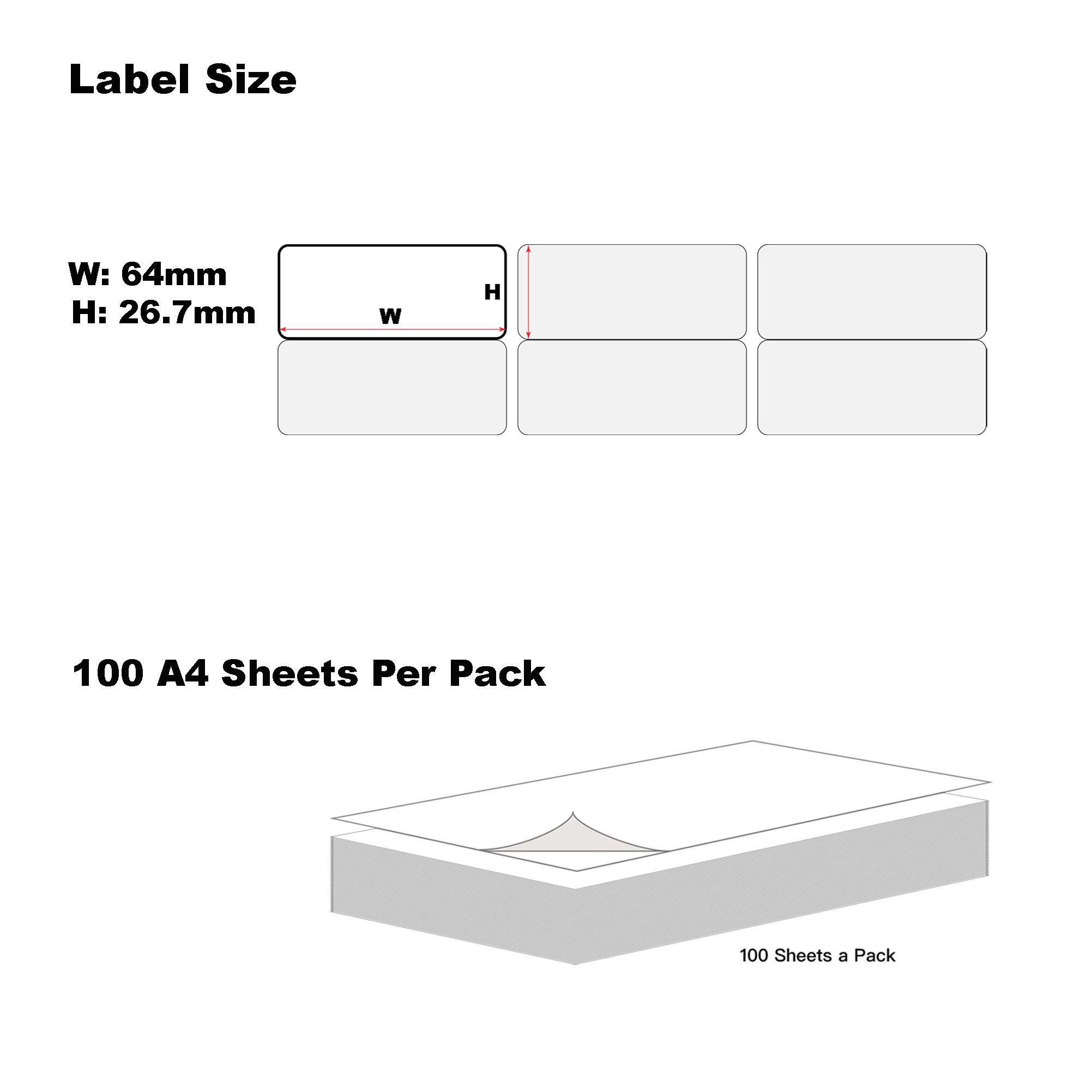 A4 Format Rectangle Labels 64 x 26.7mm 30 Labels Per Sheet