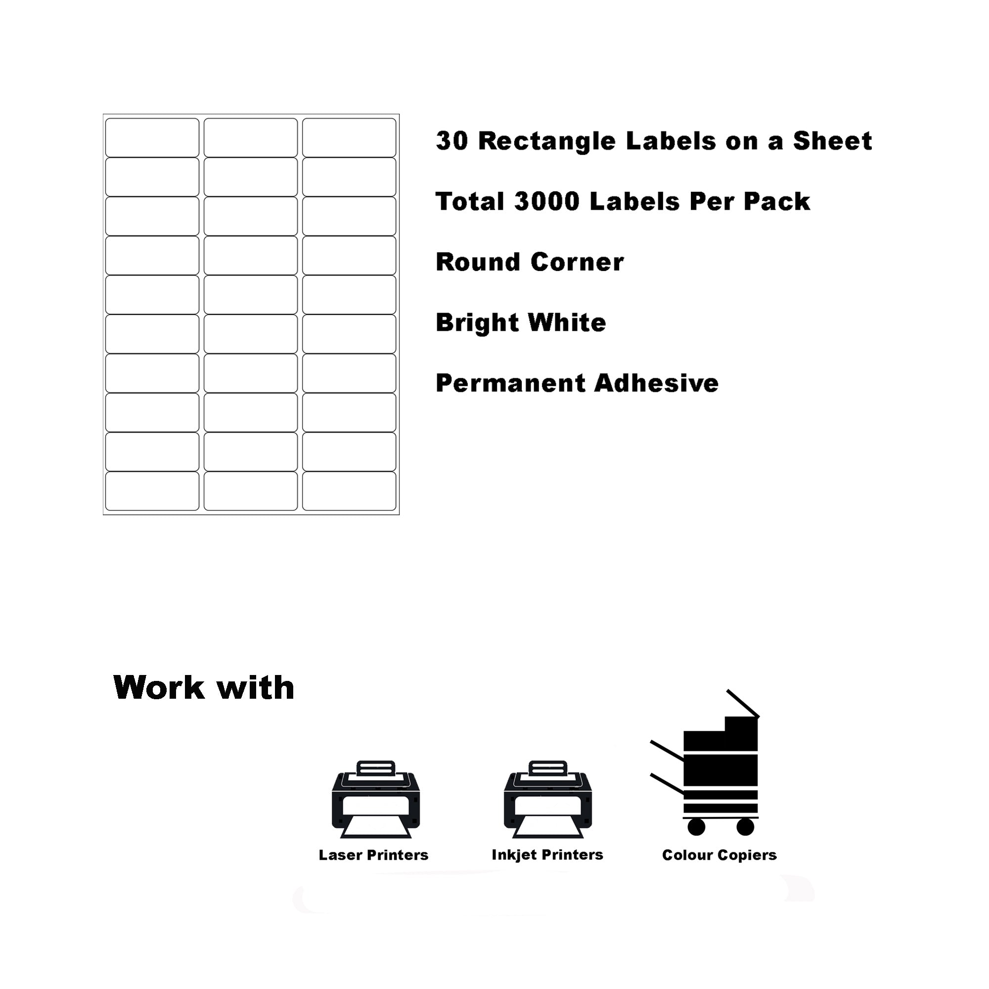 A4 Format Rectangle Labels 64 x 26.7mm 30 Labels Per Sheet-1000 Sheets-Bulk Buy