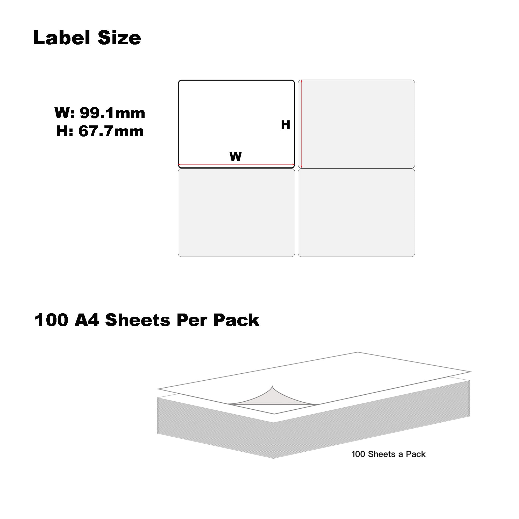 A4 Format Rectangle Labels 99.1 x 67.7mm 8 Labels Per Sheet