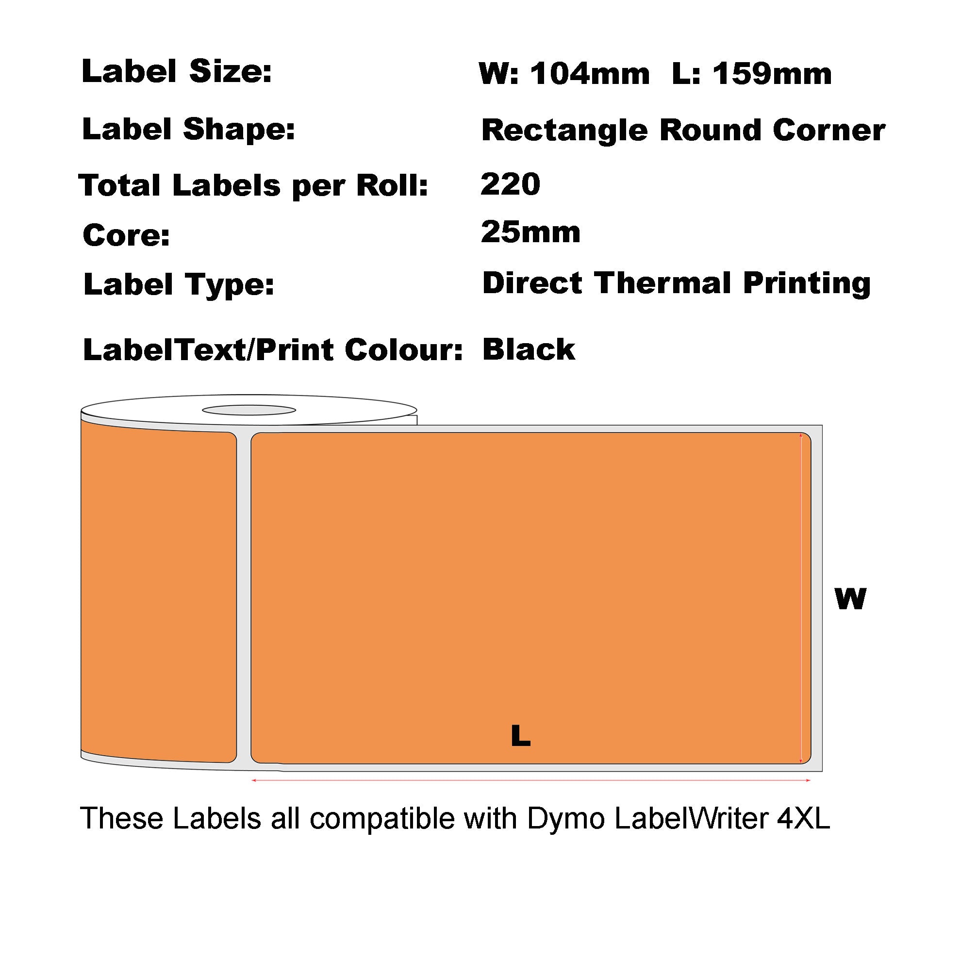 Label Compatible Dymo labelWriter 0904980 (4XL) 104mm x 159mm Orange